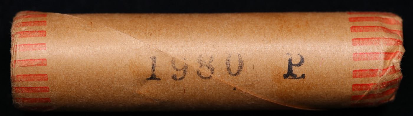 Shotgun Lincoln 1c roll, 1980-p 50 pcs Brandt Wrapper.. A terrific Shotgun roll of Lincoln cents. Most if not all coin should be cherry red.