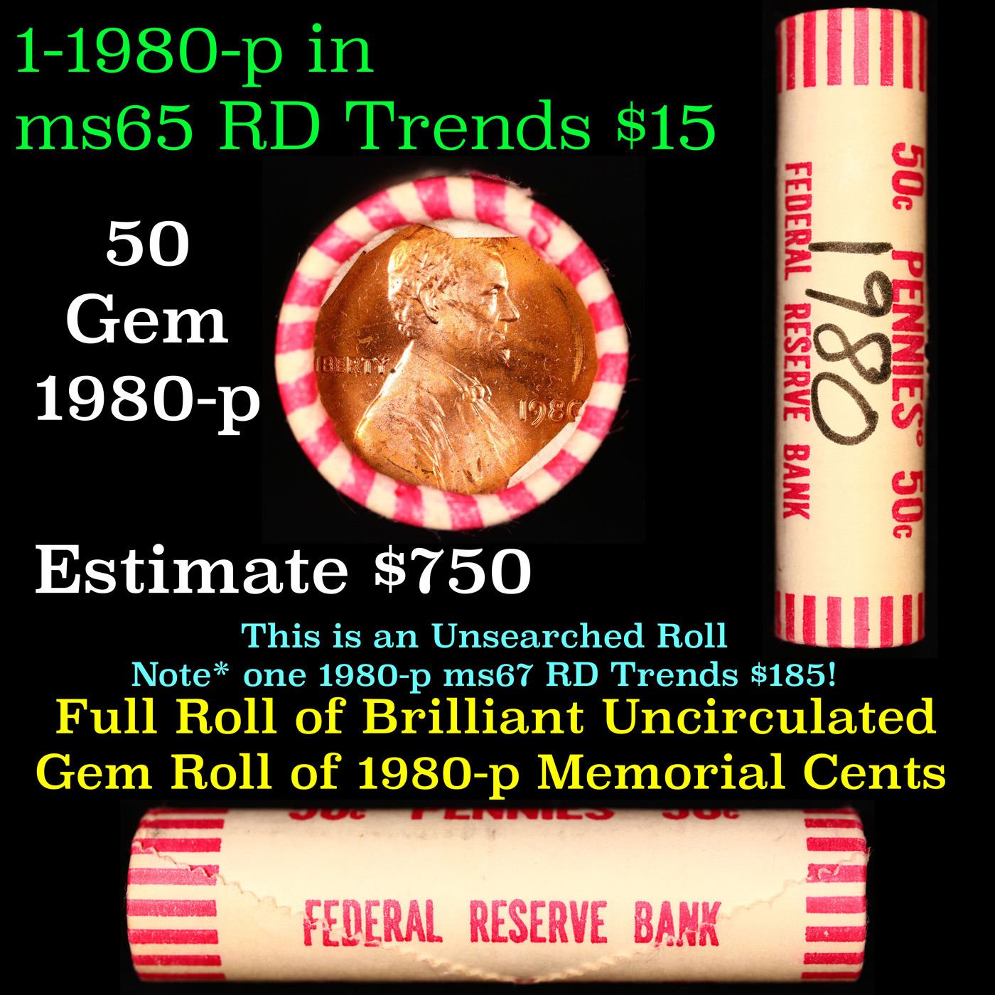 Shotgun Lincoln 1c roll, 1980-p 50 pcs Federal Reserve Babk Wrapper .