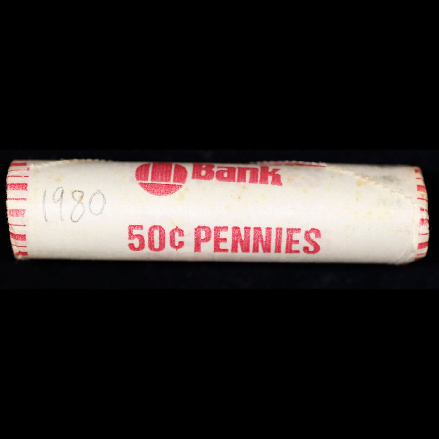 Shotgun Lincoln 1c roll, 1980-p 50 pcs Merchant Bank Wrapper.