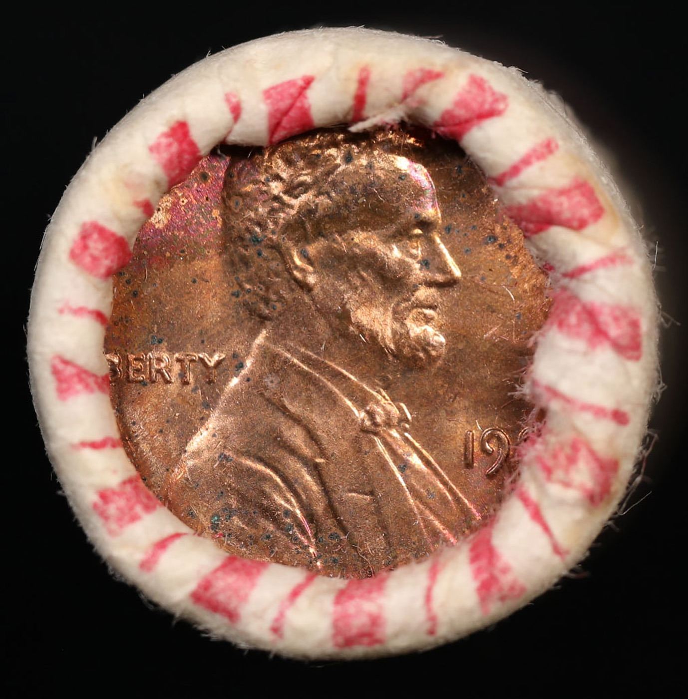Shotgun Lincoln 1c roll, 1980-p 50 pcs Merchants Bank Wrapper.. A terrific Shotgun roll of Lincoln cents. All coins appear to be cherry red. Trends ms65 rd $15