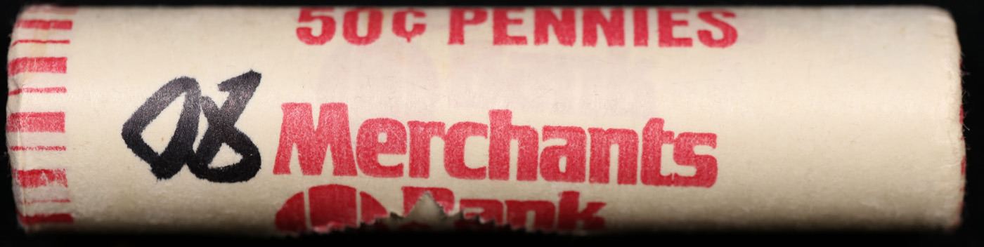 Shotgun Lincoln 1c roll, 1980-p 50 pcs Merchants Bank Wrapper.