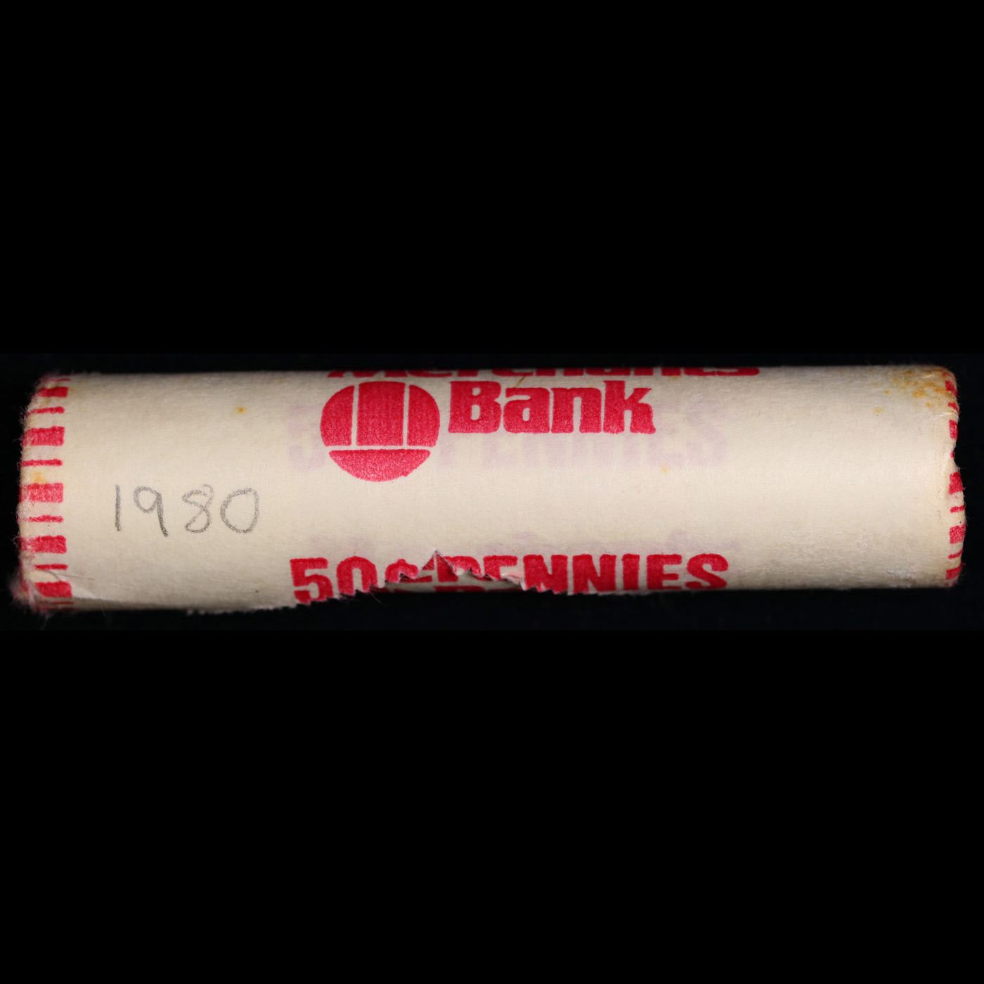 Shotgun Lincoln 1c roll, 1980-p 50 pcs Merchants Bank Wrapper.