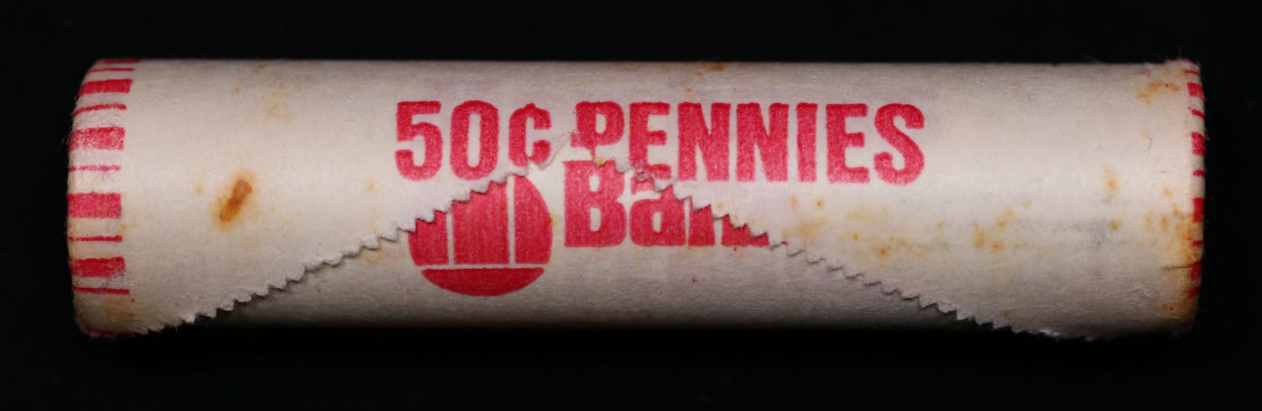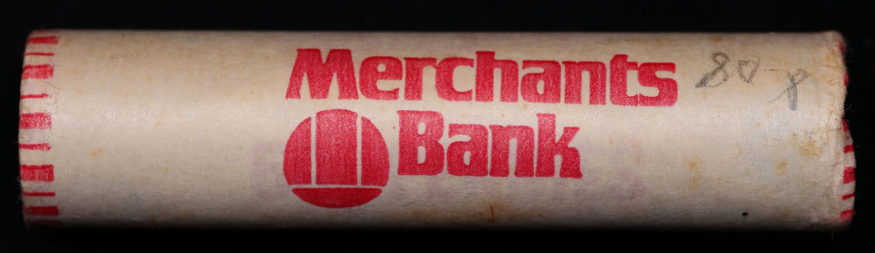 Shotgun Lincoln 1c roll, 1980-p 50 pcs Merchants Bank Wrapper.