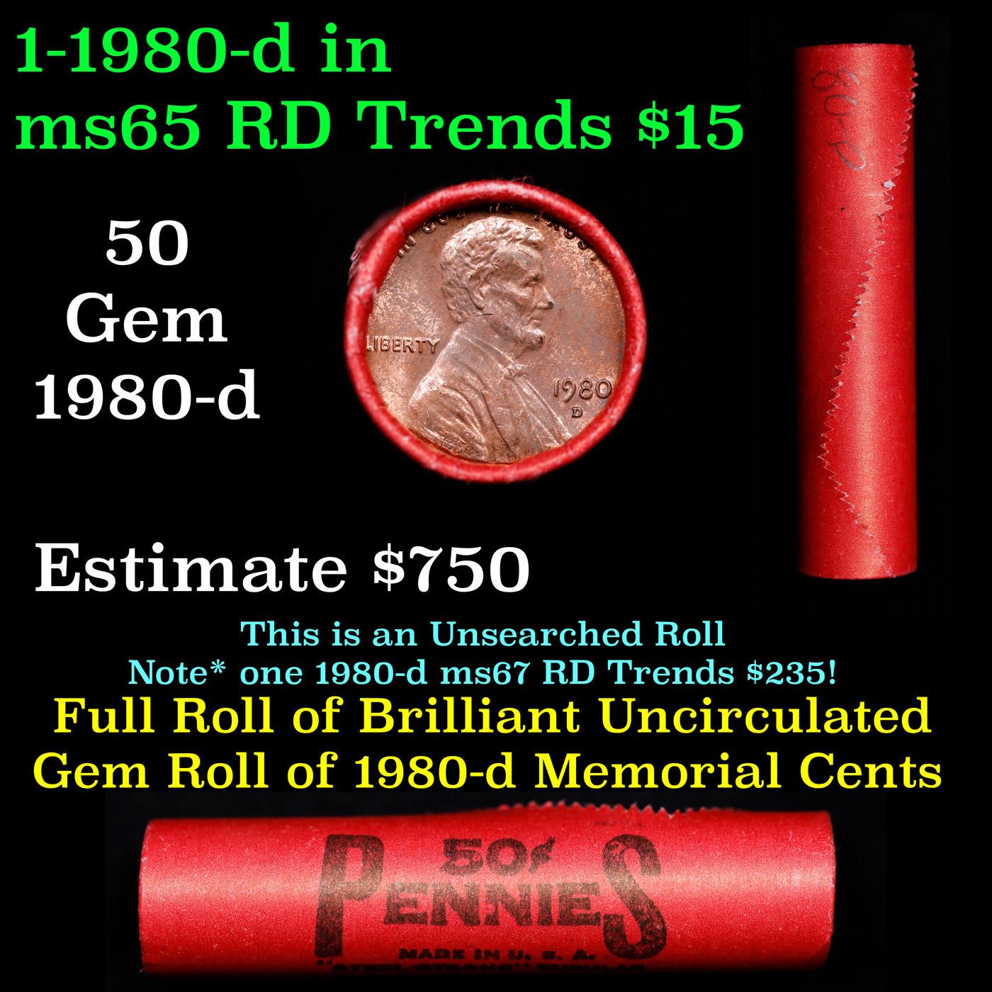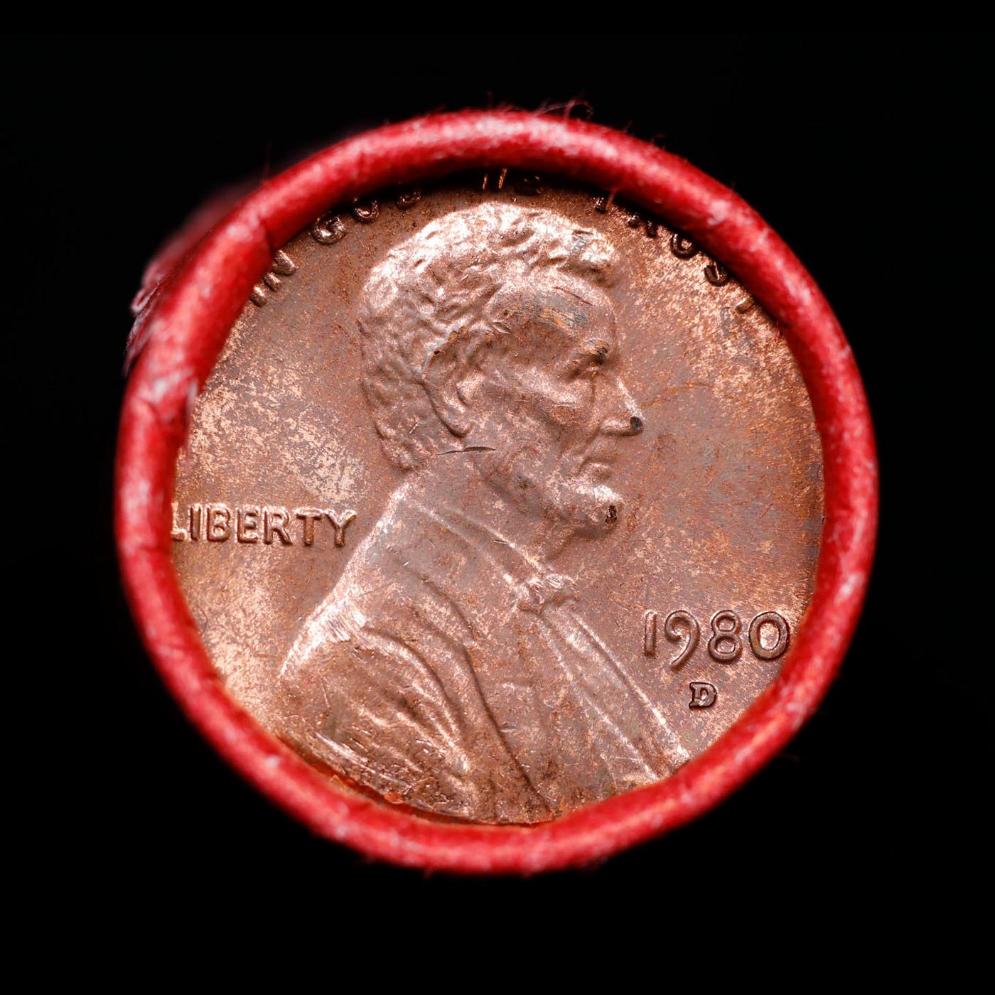 Shotgun Lincoln 1c roll, 1980-p 50 pcs Steel-Strong Wrapper.. A terrific Shotgun roll of Lincoln cents. Most if not all coin should be cherry red.