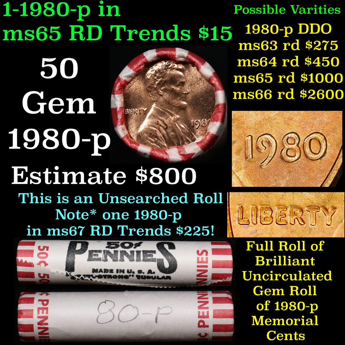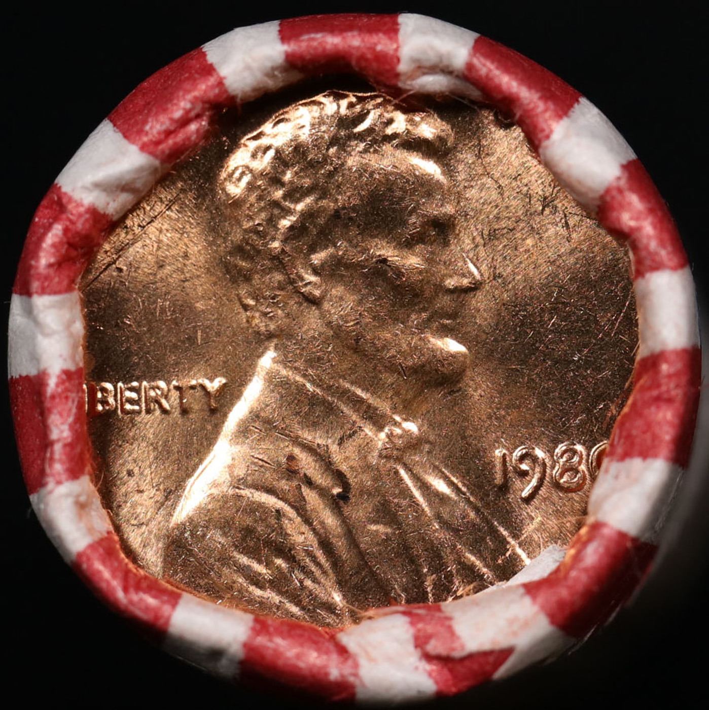 Shotgun Lincoln 1c roll, 1980-p 50 pcs Steel Strong Wrapper.. A terrific Shotgun roll of Lincoln cents. Most if not all coin should be cherry red.