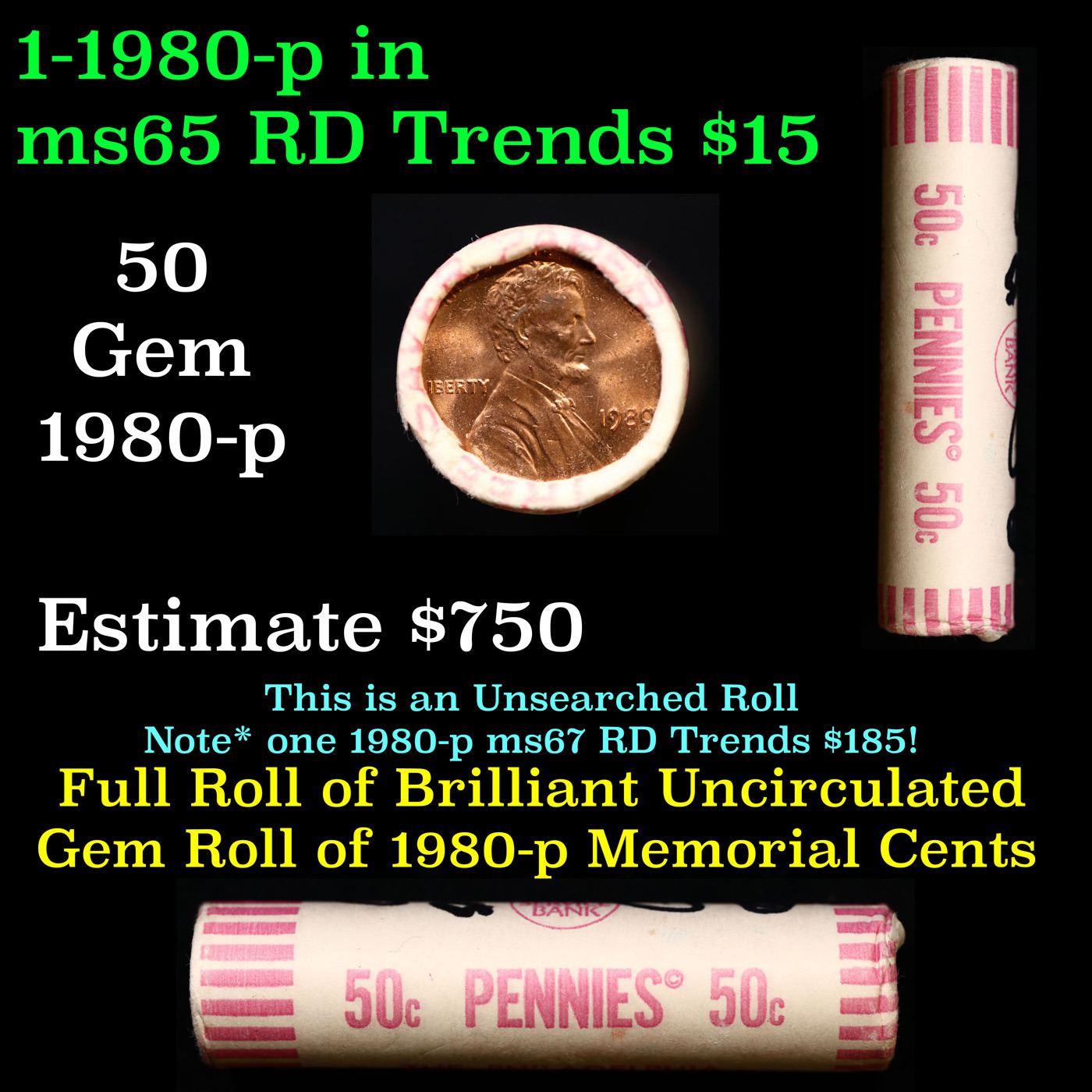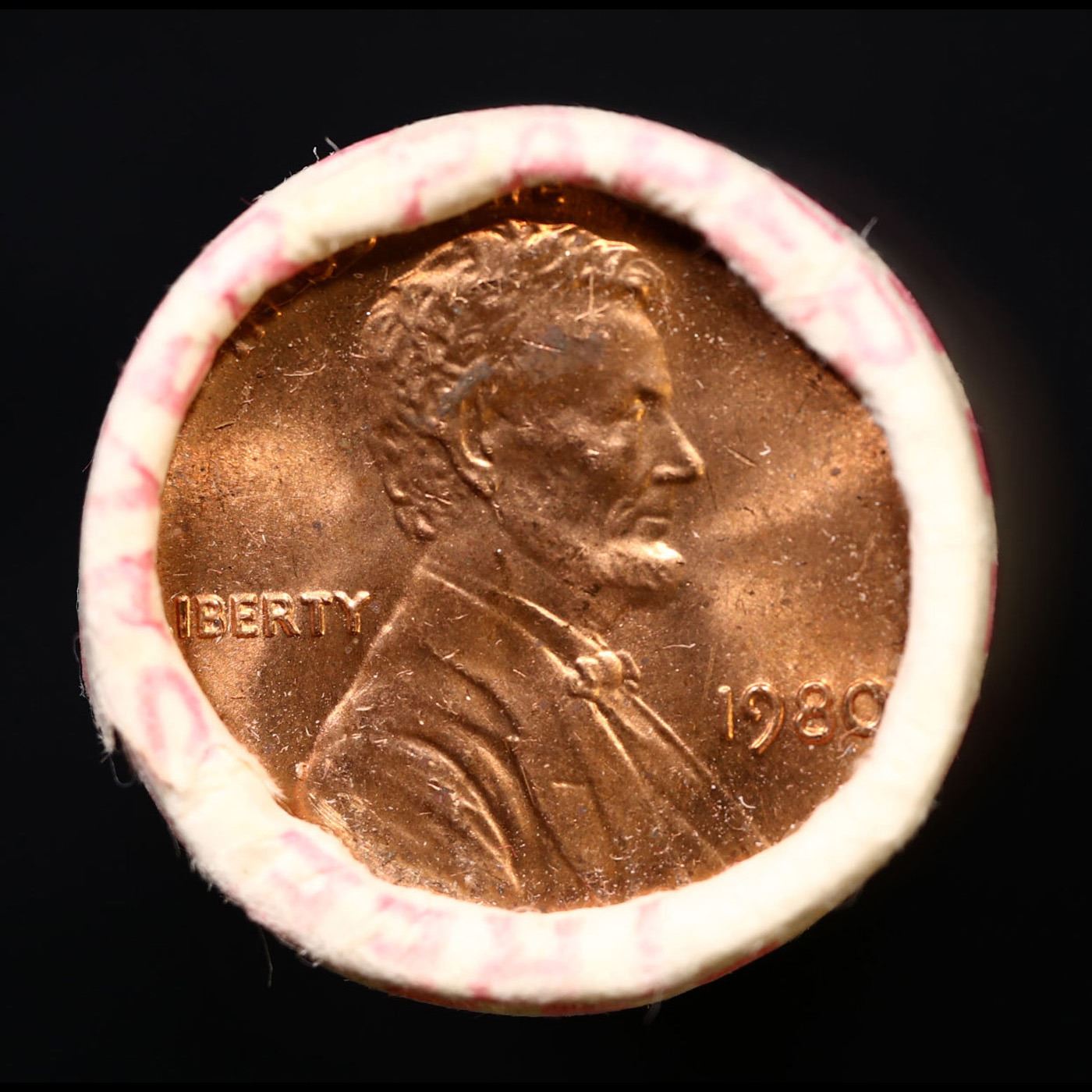 Shotgun Lincoln 1c roll, 1980-p 50 pcs The Philadelphia National Bank Wrapper.. A terrific Shotgun roll of Lincoln cents. Most if not all coin should be cherry red.