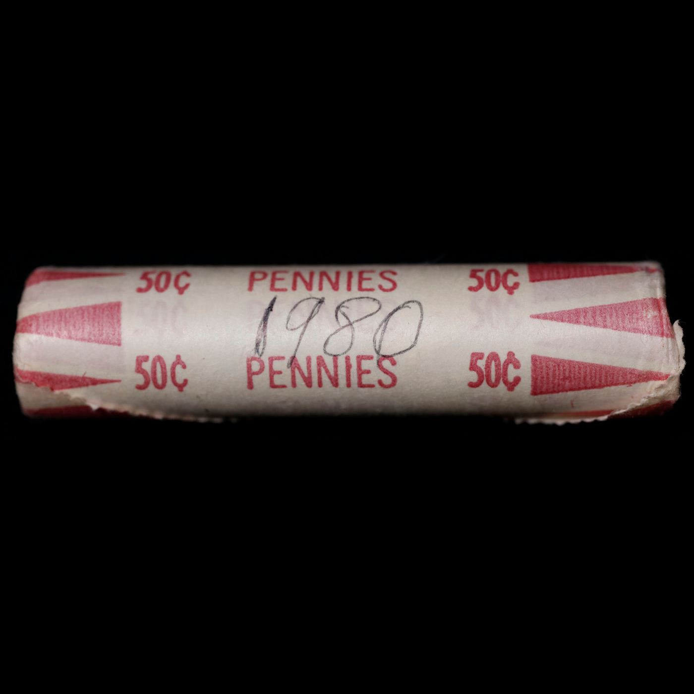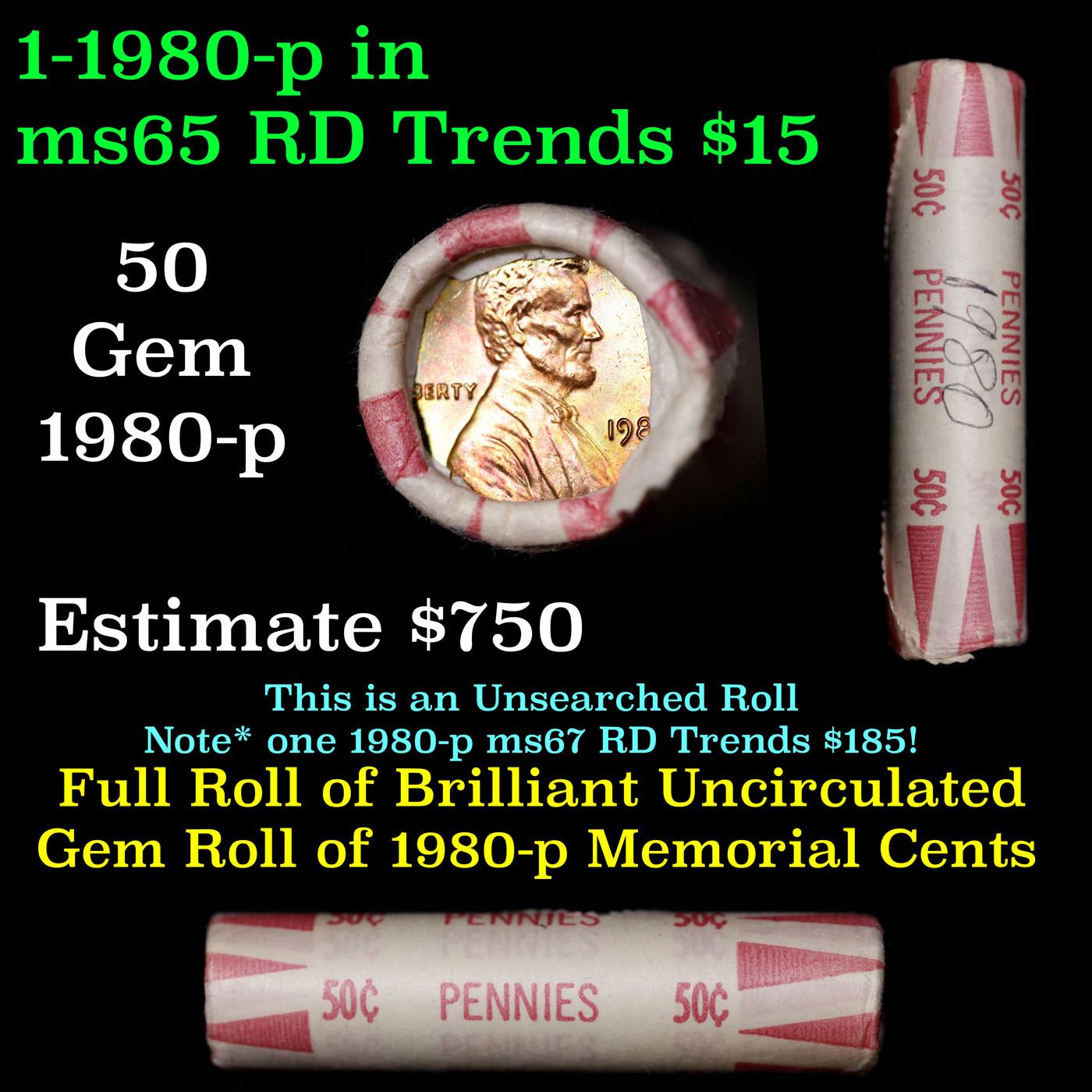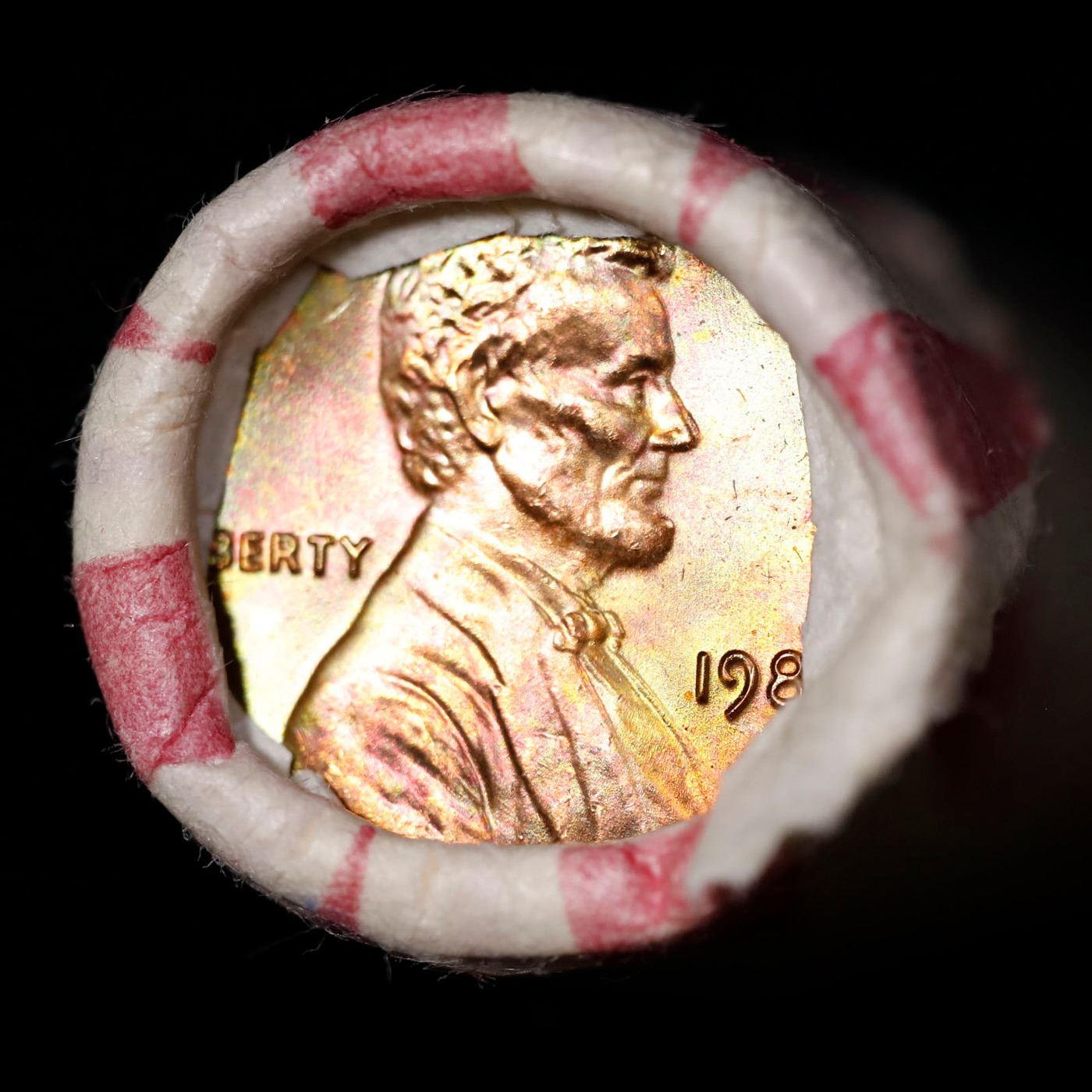 Shotgun Lincoln 1c roll, 1980-p 50 pcs Wrapper.. A terrific Shotgun roll of Lincoln cents. Most if not all coin should be cherry red. Trends ms65 rd $15