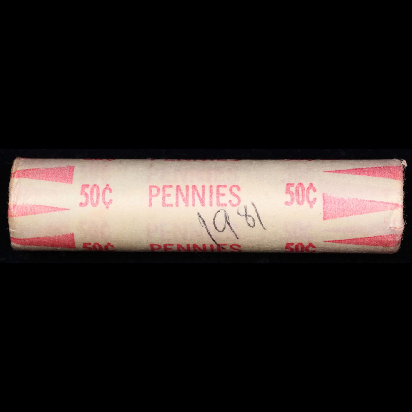 Shotgun Lincoln 1c roll, 1981-p 50 pcs Bank Wrapper.. A terrific Shotgun roll of Lincoln cents. Most if not all coin should be cherry red.
