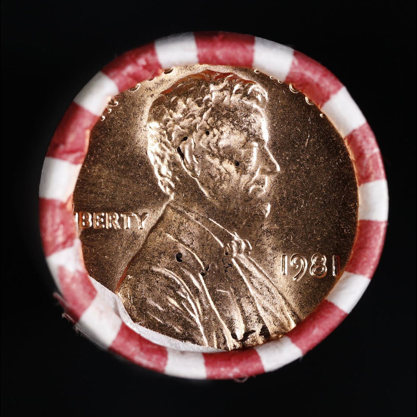Shotgun Lincoln 1c roll, 1981-p 50 pcs Bank Wrapper.. A terrific Shotgun roll of Lincoln cents. Most if not all coin should be cherry red.