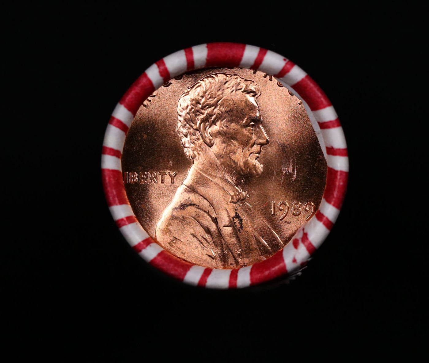 Shotgun Lincoln 1c roll, 1981-p 50 pcs Brandt 50c Wrapper.. A terrific Shotgun roll of Lincoln cents. Most if not all coin should be cherry red.