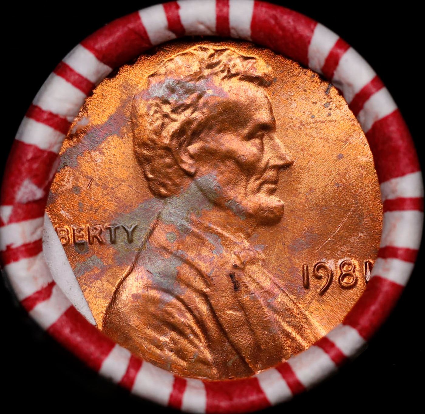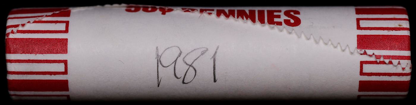 Shotgun Lincoln 1c roll, 1981-p 50 pcs Brandt 50c Wrapper.. A terrific Shotgun roll of Lincoln cents. Most if not all coin should be cherry red.
