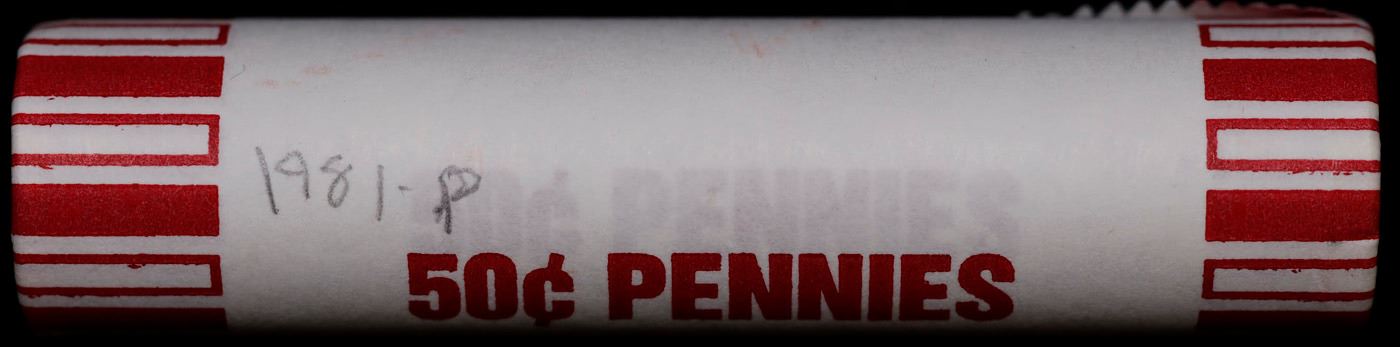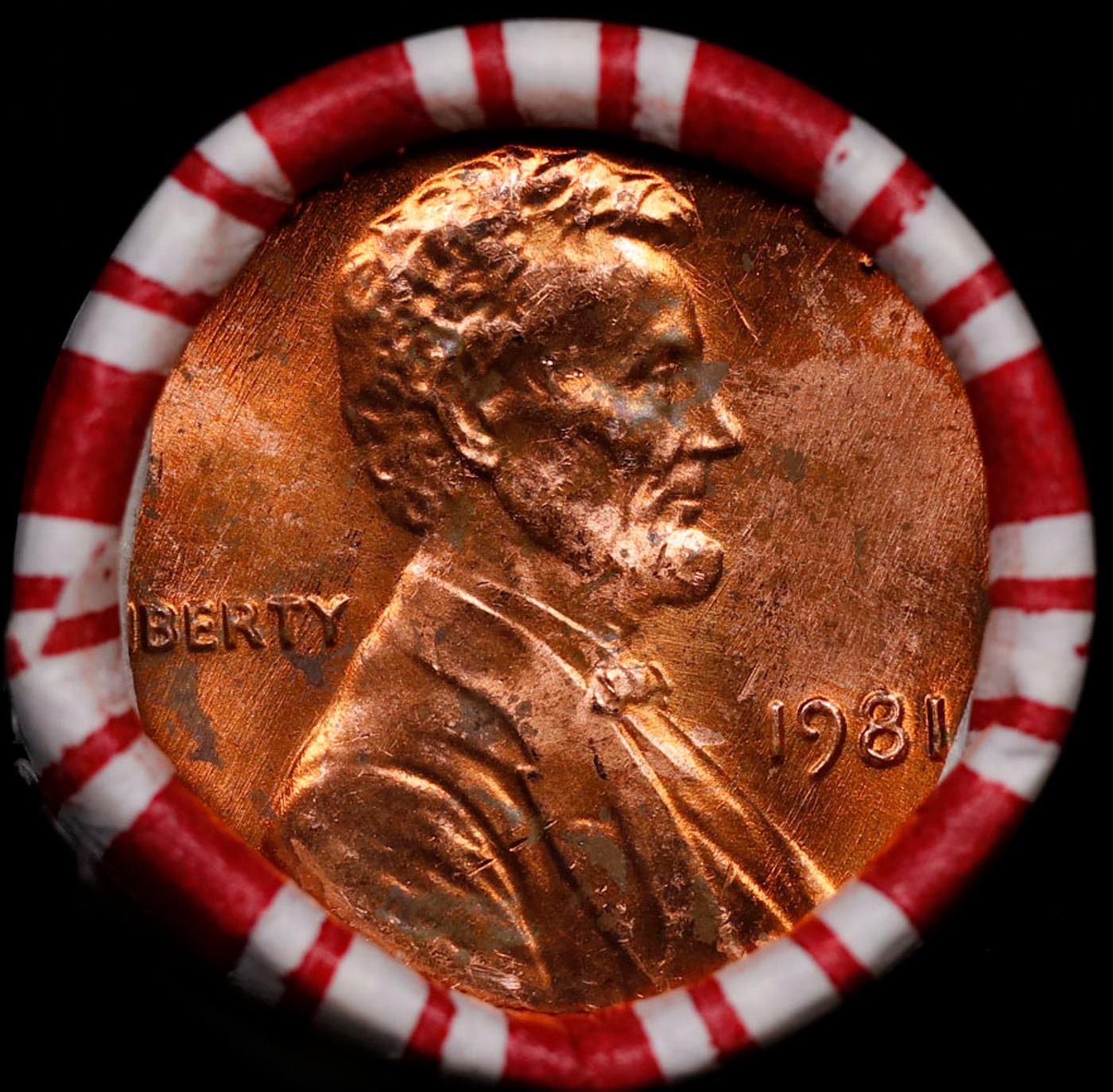 Shotgun Lincoln 1c roll, 1981-p 50 pcs Brandt 50c Wrapper.. A terrific Shotgun roll of Lincoln cents. Most if not all coin should be cherry red.