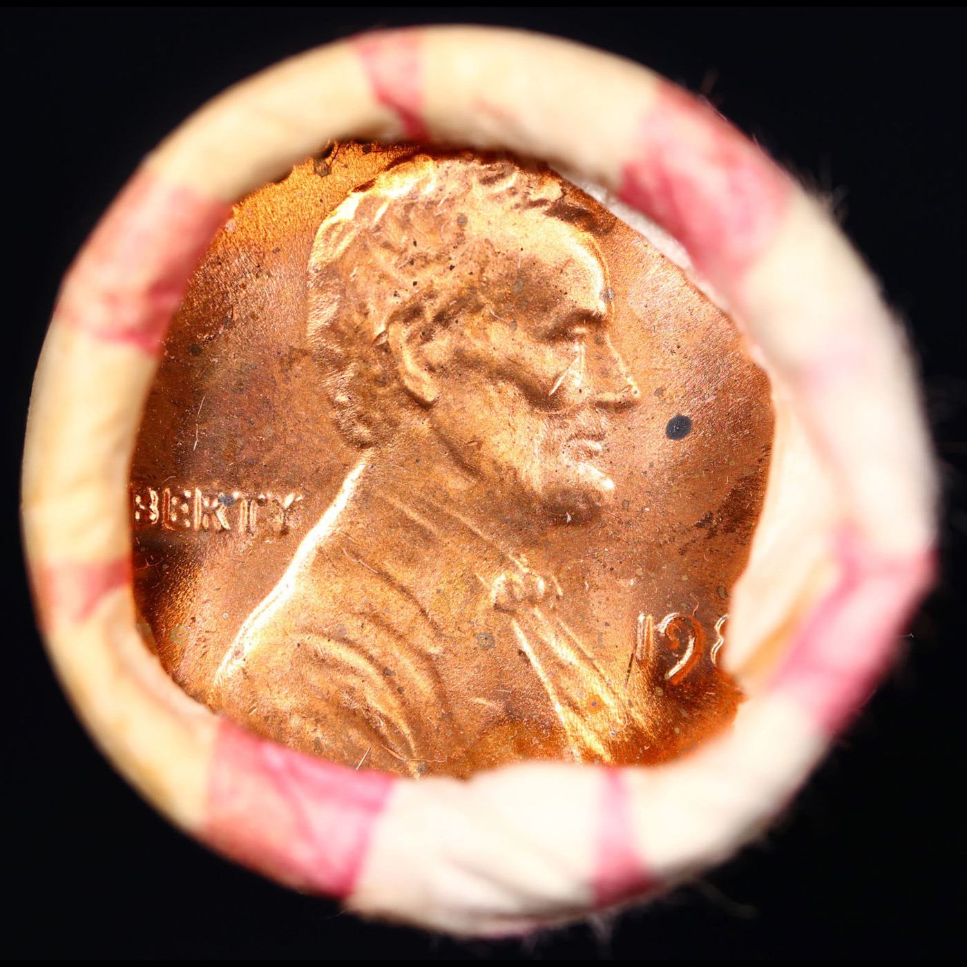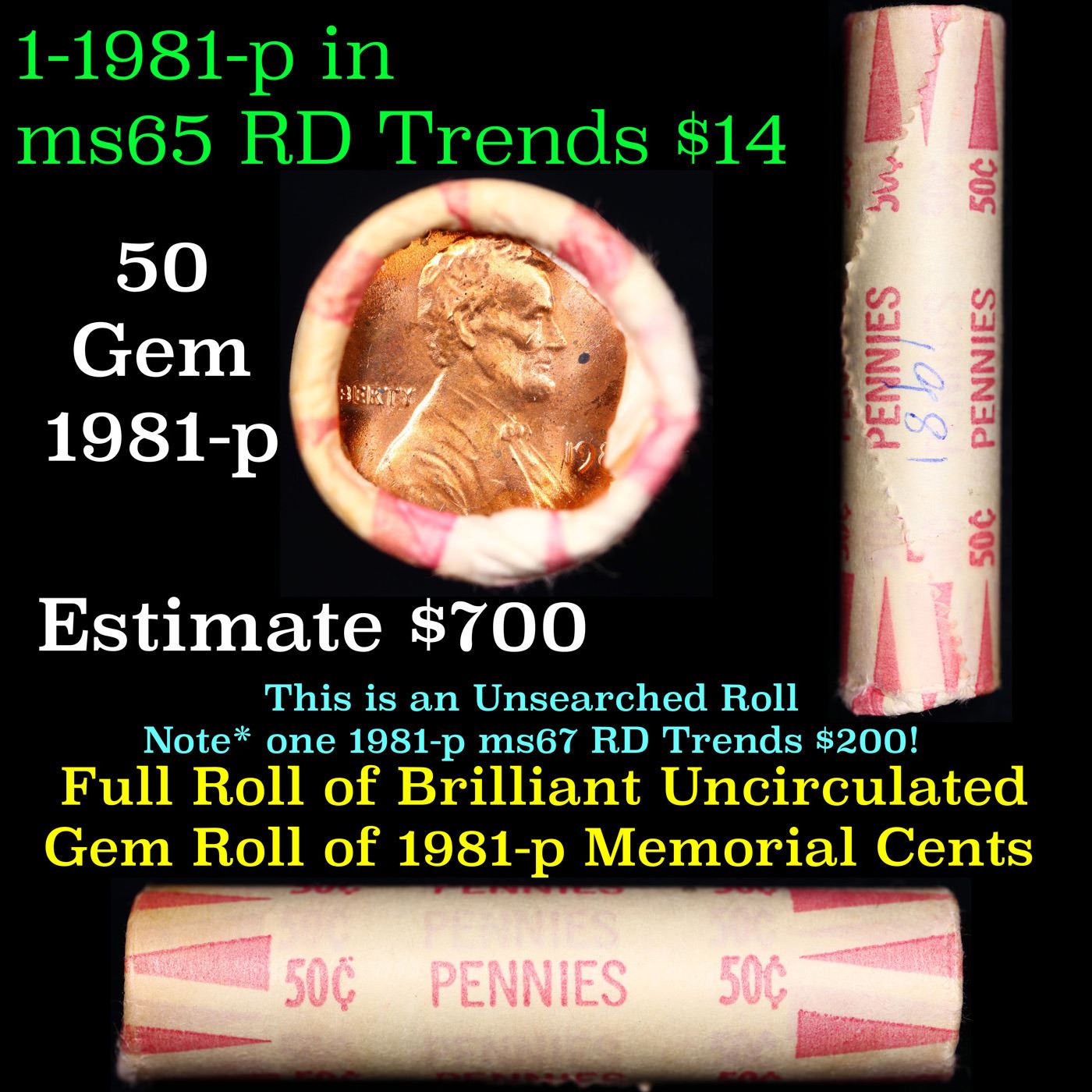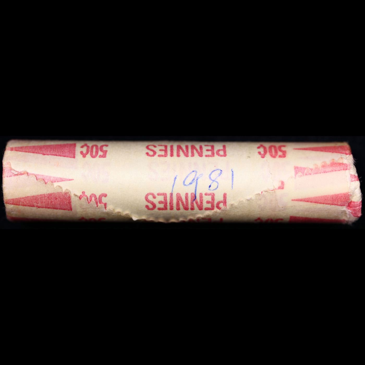 Shotgun Lincoln 1c roll, 1981-p 50 pcs Brandt Wrapper . A terrific Shotgun roll of Lincoln cents. All coins cherry red. Trends ms65 rd $14