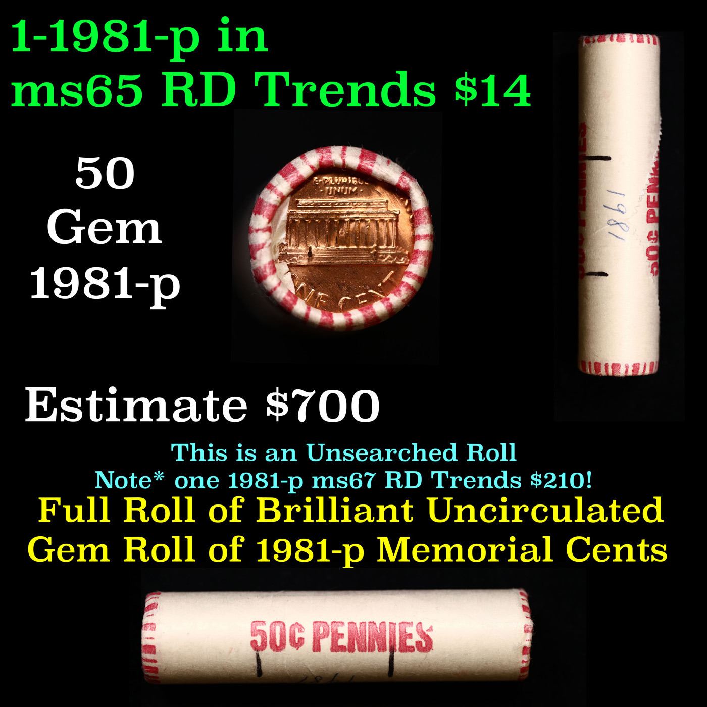 Shotgun Lincoln 1c roll, 1981-p 50 pcs Brandt Wrapper.. A terrific Shotgun roll of Lincoln cents. Most if not all coin should be cherry red.