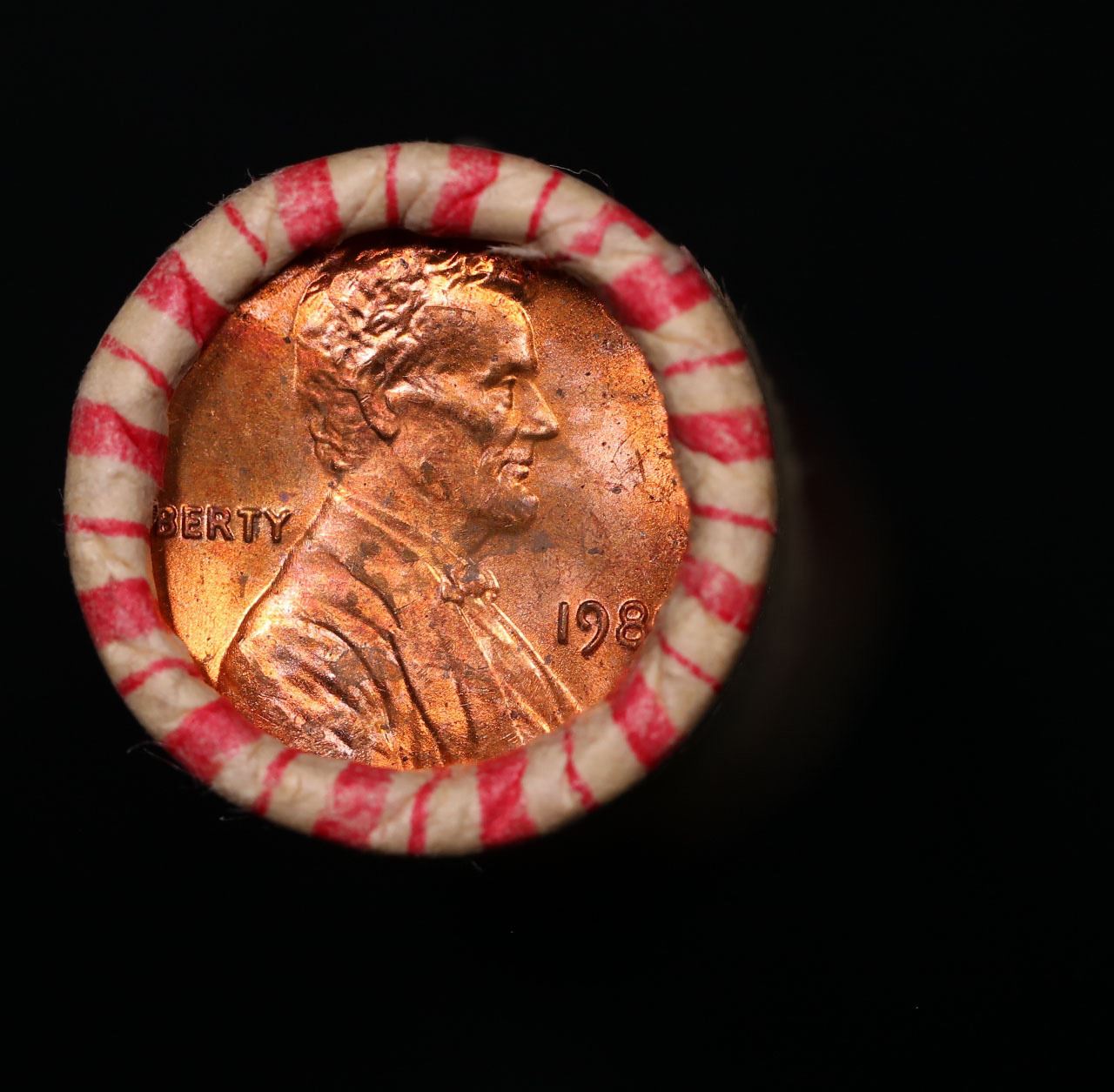 Shotgun Lincoln 1c roll, 1981-p 50 pcs Merchants Bank Wrapper.. A terrific Shotgun roll of Lincoln cents. Most if not all coin should be cherry red.