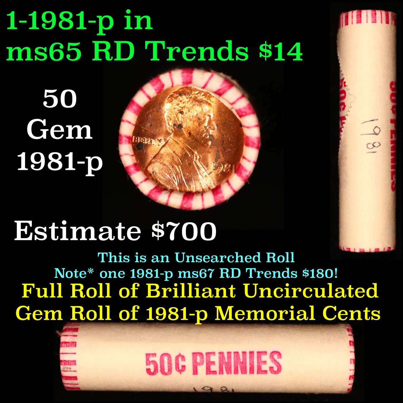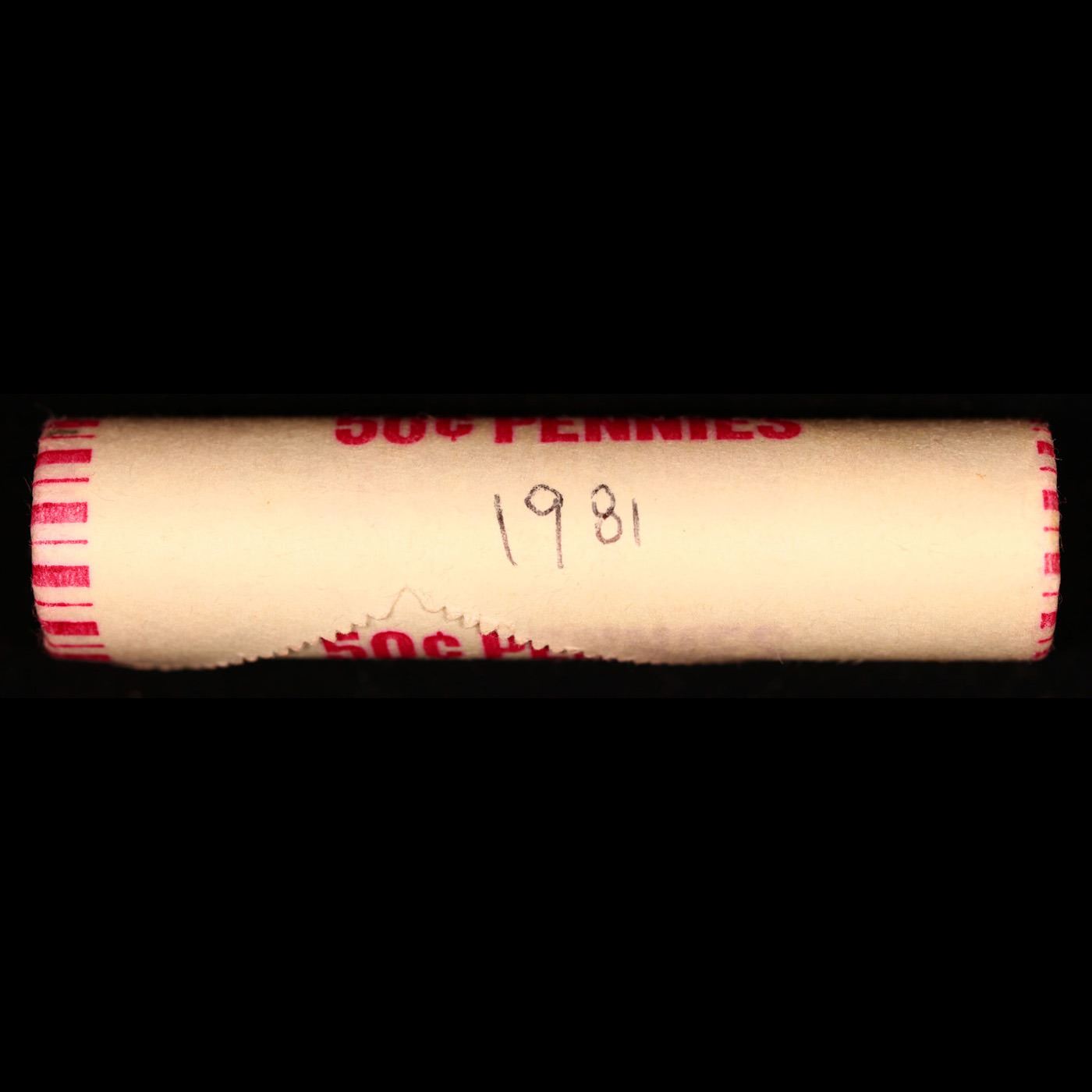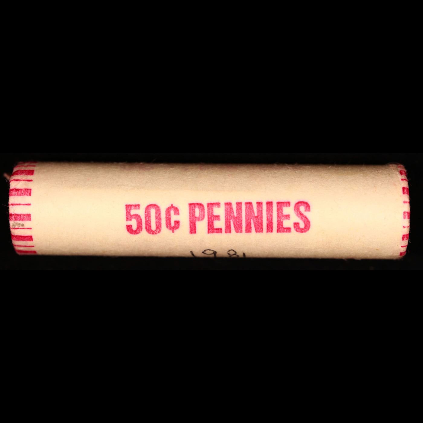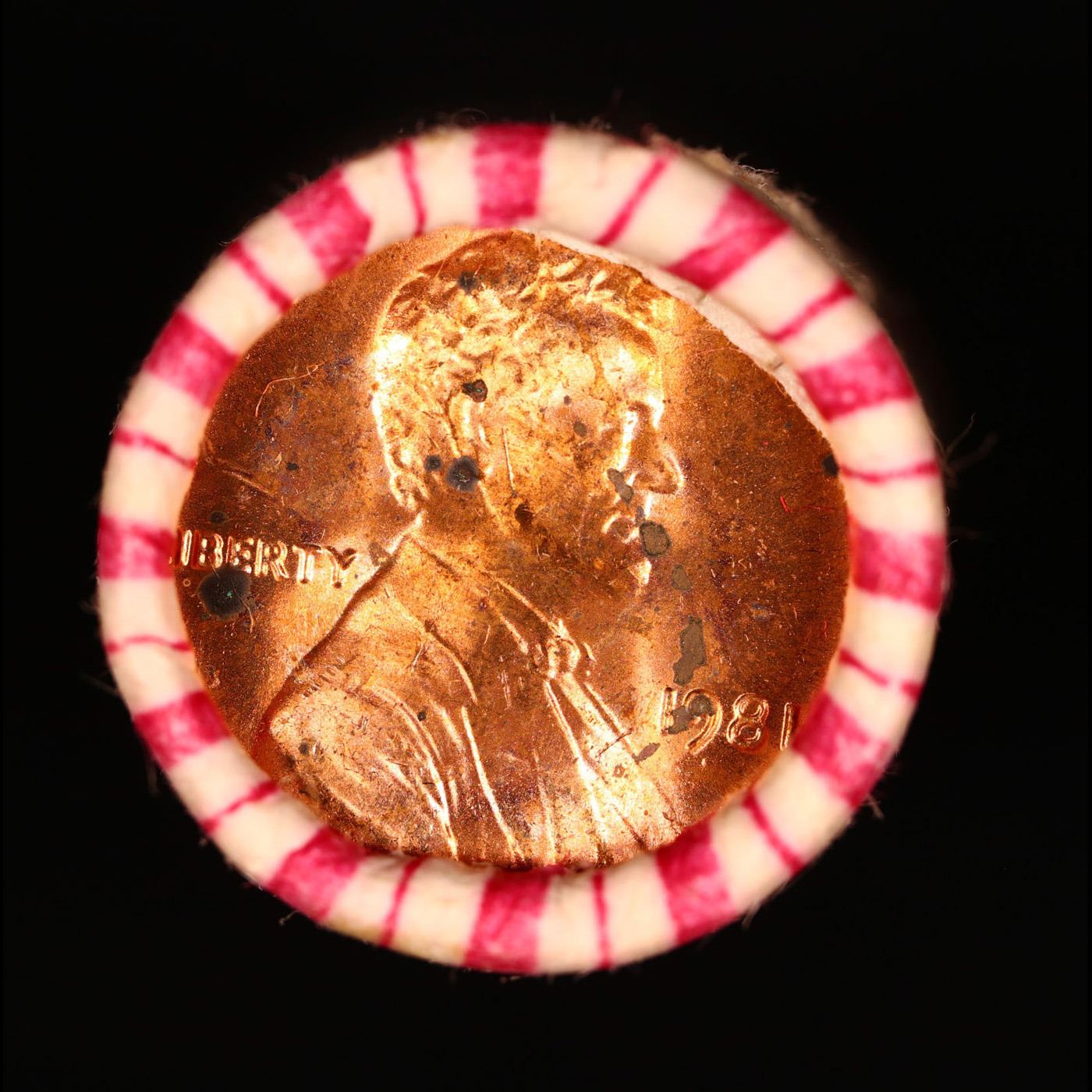Shotgun Lincoln 1c roll, 1981-p 50 pcs Old N.F String & Son Wrapper. A terrific Shotgun roll of Lincoln cents. All coins cherry red. Trends ms65 rd $16