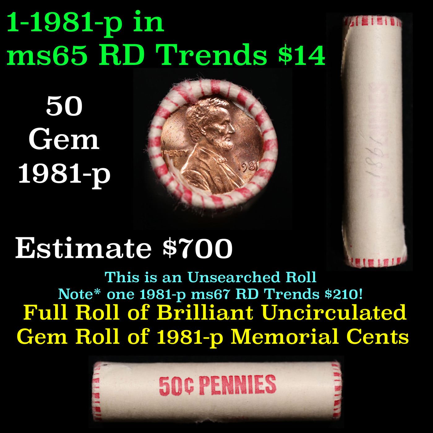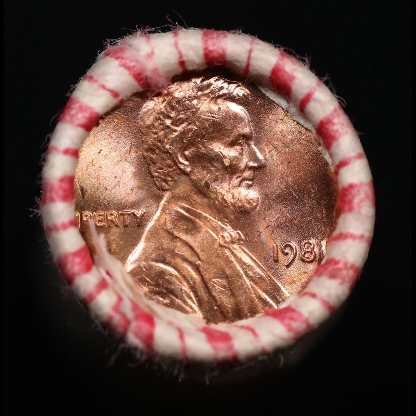 Shotgun Lincoln 1c roll, 1981-p 50 pcs in Wrapper.. A terrific Shotgun roll of Lincoln cents. Most if not all coin should be cherry red. Trends ms65 rd $14