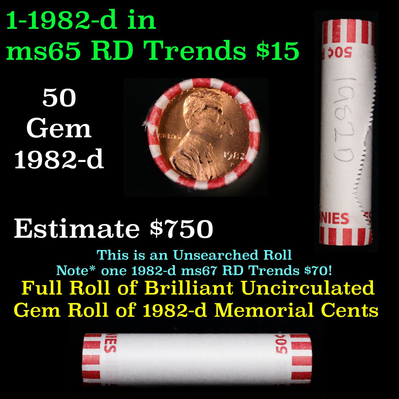 Shotgun Lincoln 1c roll, 1982-d 50 pcs Bank Wrapper.. A terrific Shotgun roll of Lincoln cents. Most if not all coin should be cherry red.