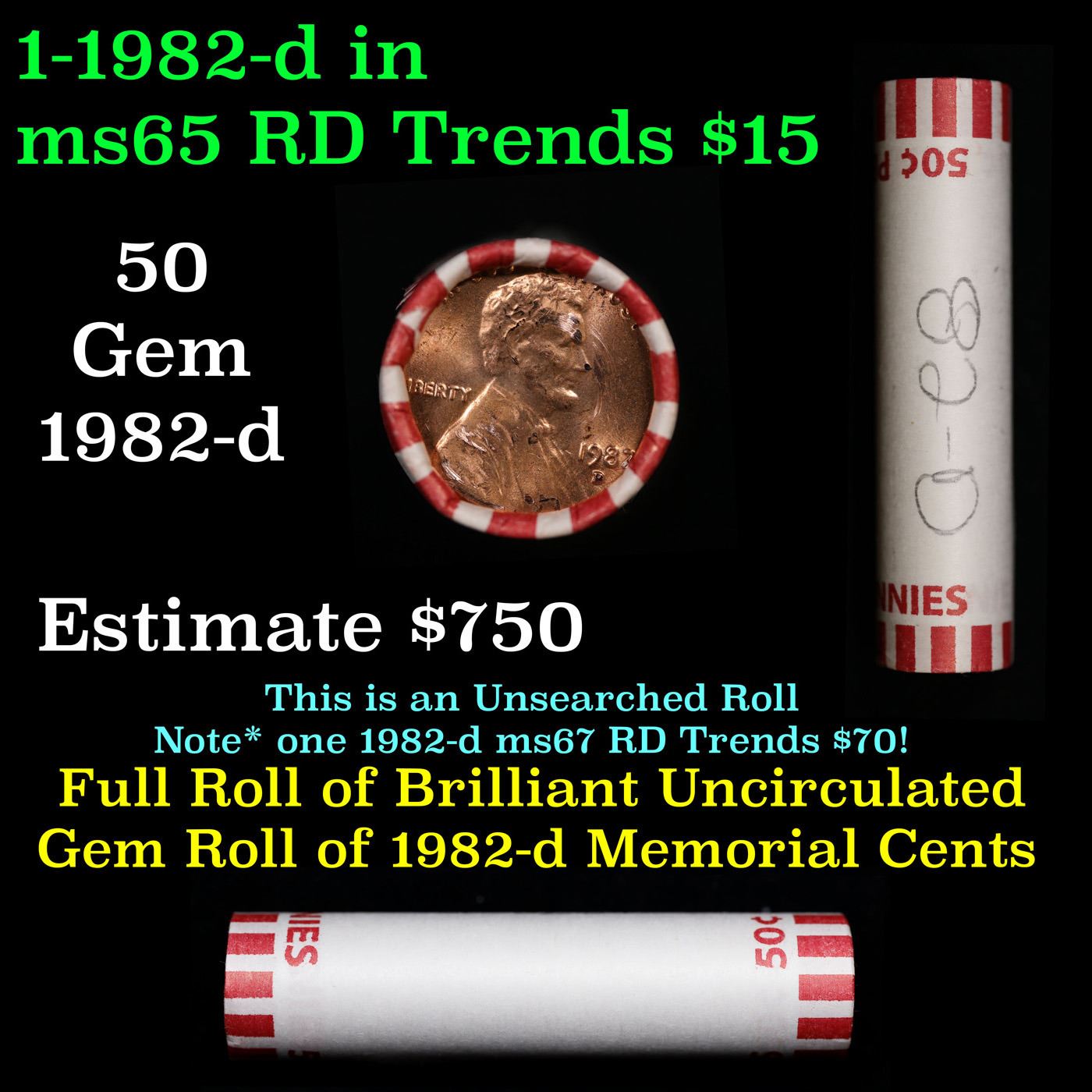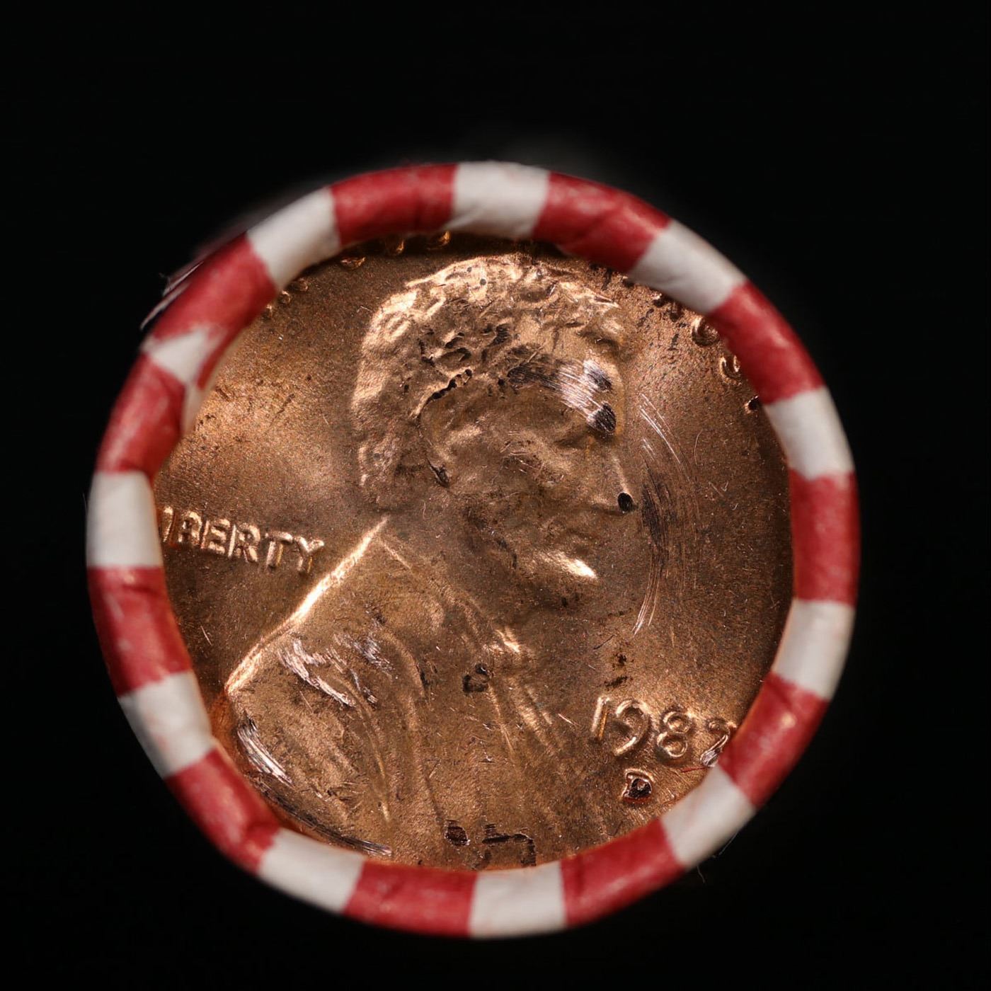 Shotgun Lincoln 1c roll, 1982-d 50 pcs Bank Wrapper.. A terrific Shotgun roll of Lincoln cents. Most if not all coin should be cherry red.