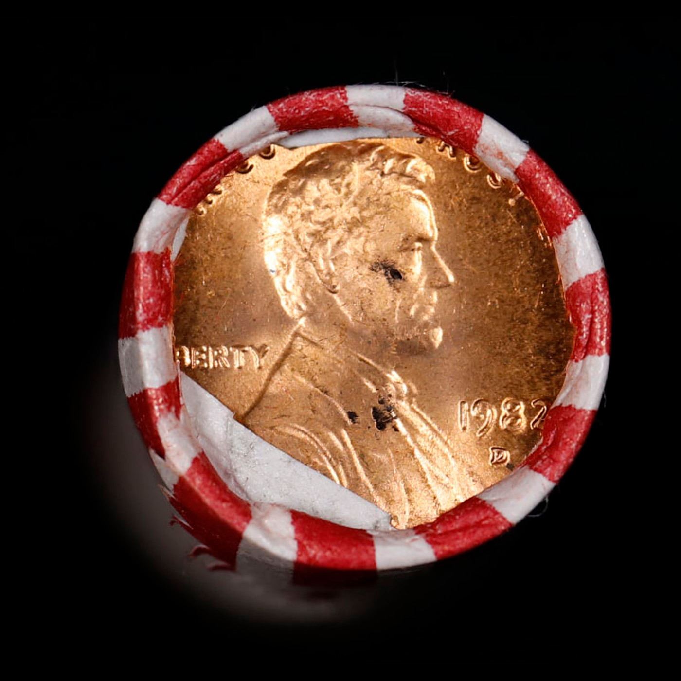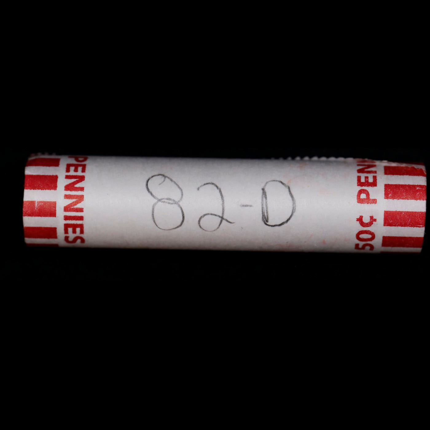 Shotgun Lincoln 1c roll, 1982-d 50 pcs Bank Wrapper.. A terrific Shotgun roll of Lincoln cents. Most if not all coin should be cherry red.
