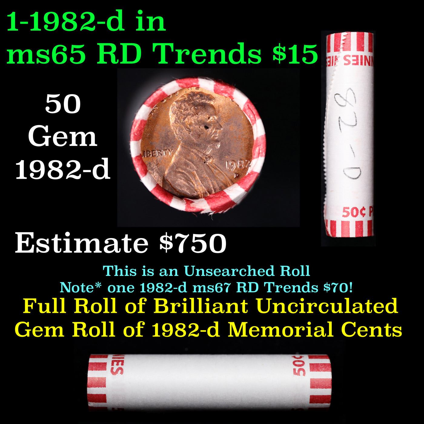 Shotgun Lincoln 1c roll, 1982-d 50 pcs Bank Wrapper.. A terrific Shotgun roll of Lincoln cents. Most if not all coin should be cherry red.