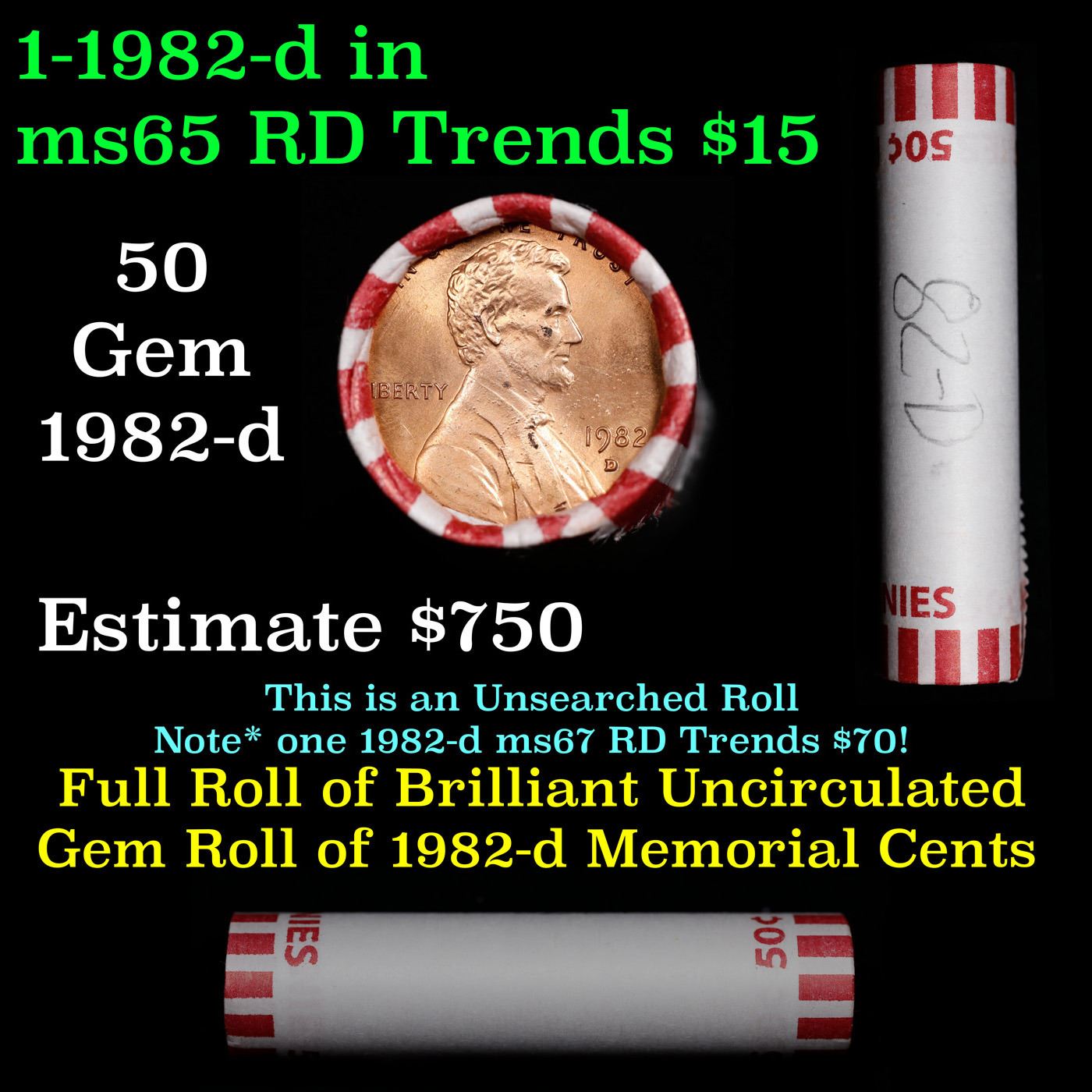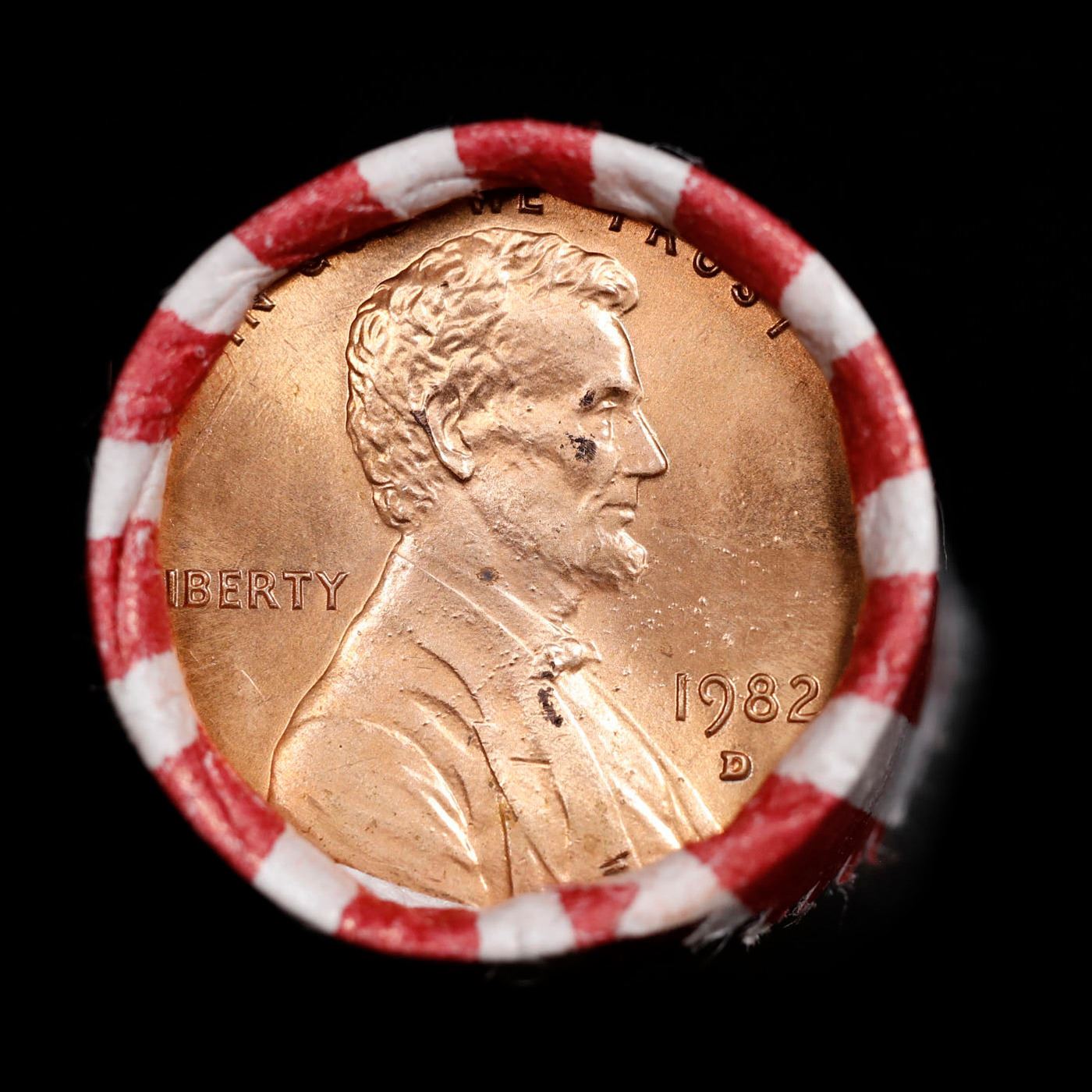 Shotgun Lincoln 1c roll, 1982-d 50 pcs Bank Wrapper.. A terrific Shotgun roll of Lincoln cents. Most if not all coin should be cherry red.