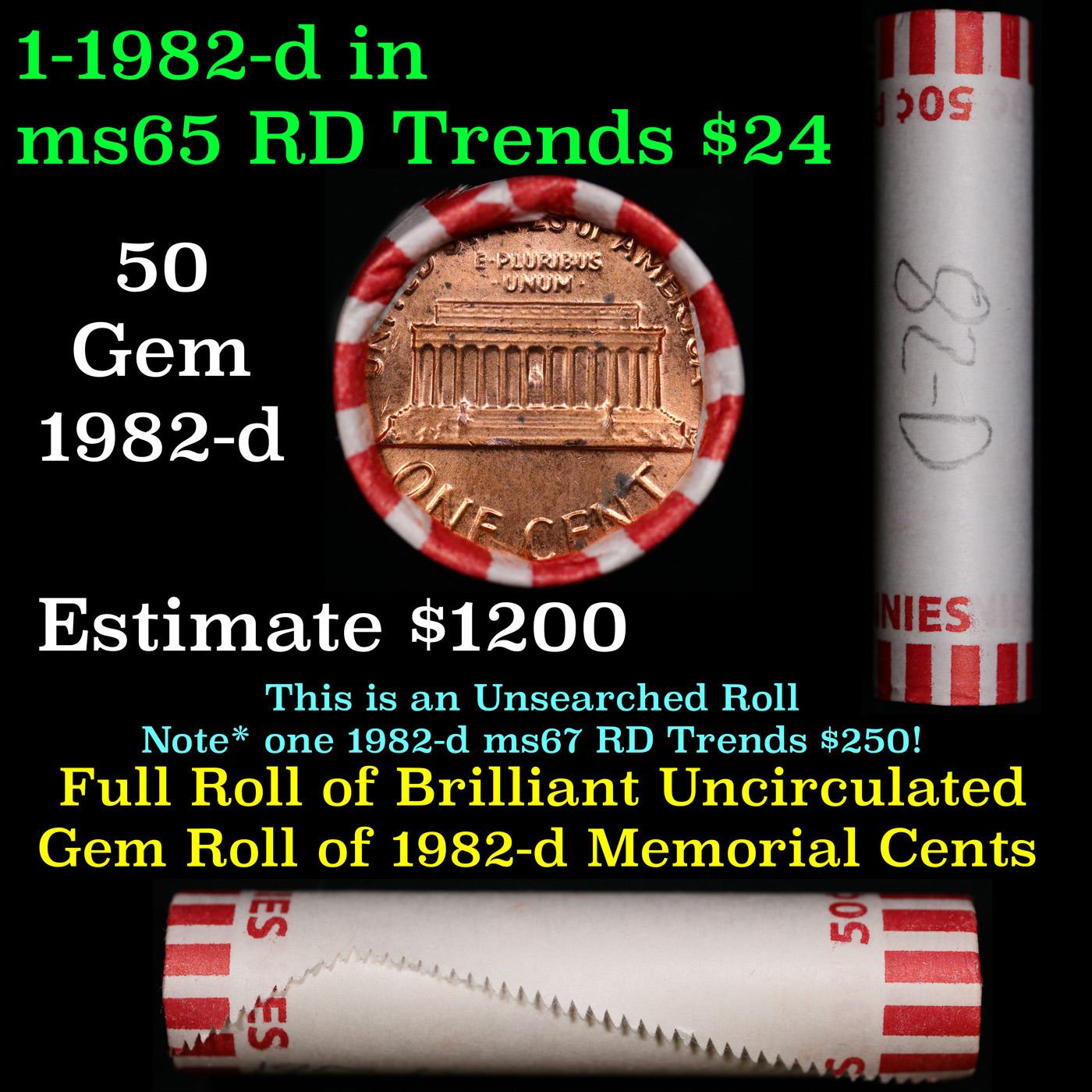 Shotgun Lincoln 1c roll, 1982-d 50 pcs Bank Wrapper.. A terrific Shotgun roll of Lincoln cents. Most if not all coin should be cherry red.