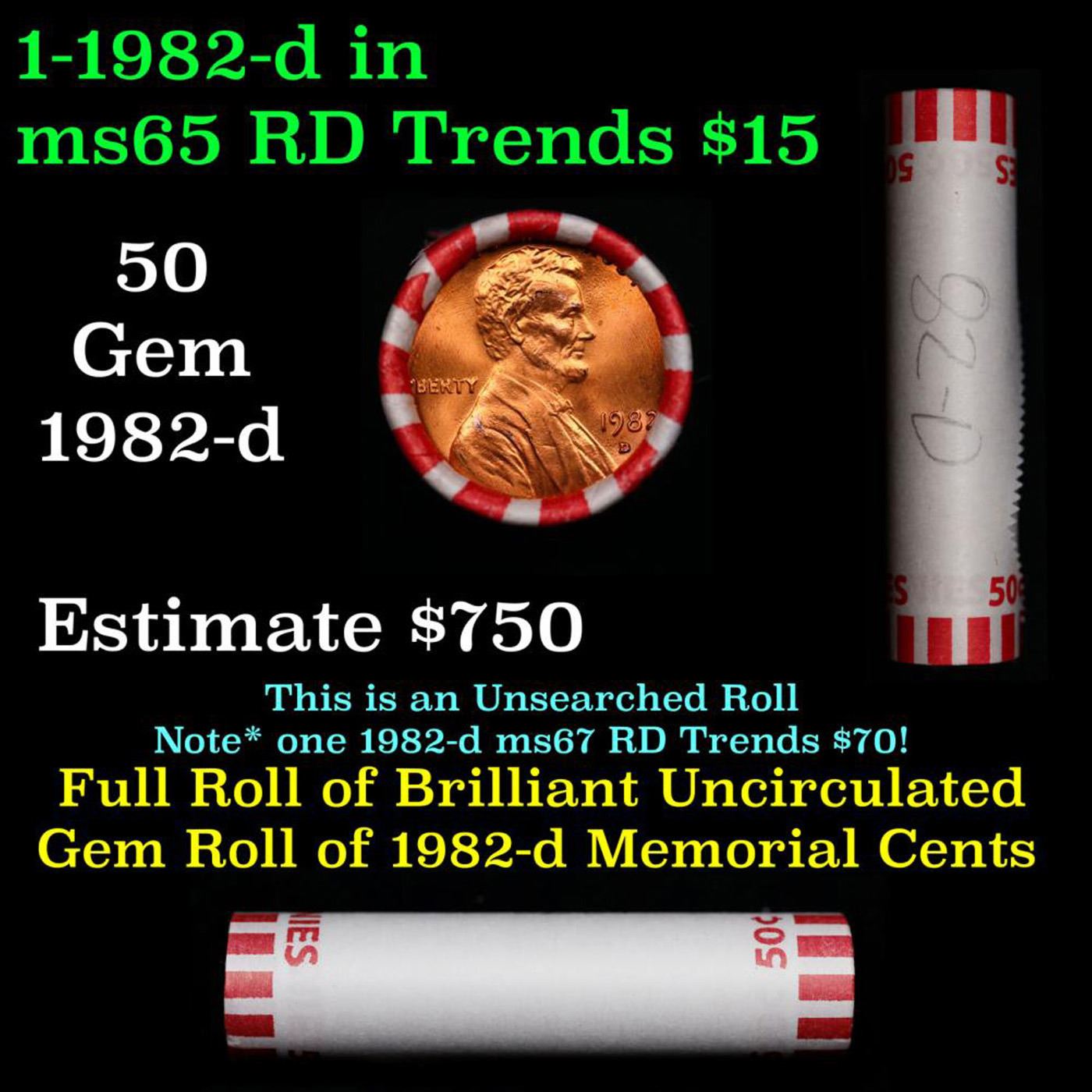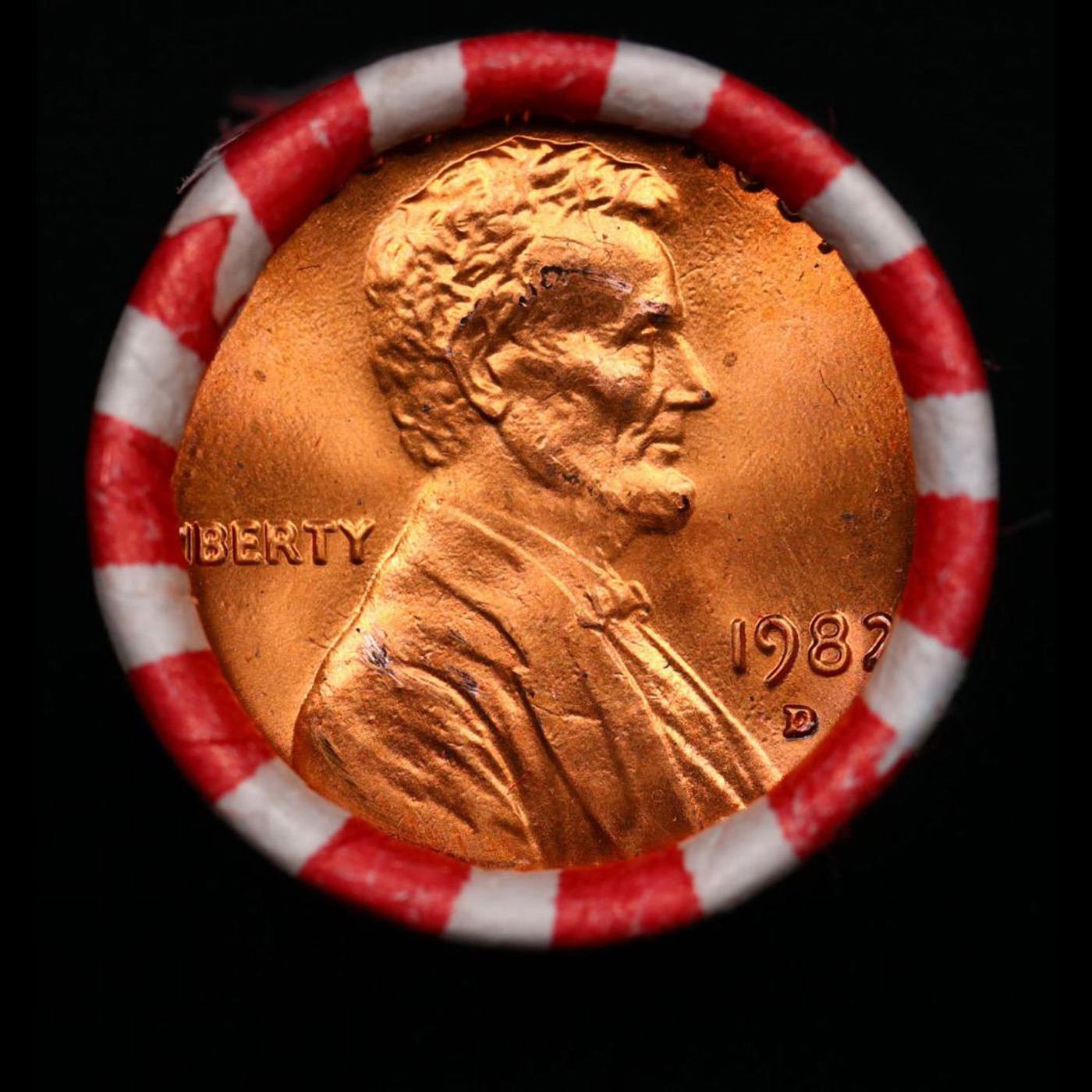 Shotgun Lincoln 1c roll, 1982-d 50 pcs Bank Wrapper.. A terrific Shotgun roll of Lincoln cents. Most if not all coin should be cherry red.