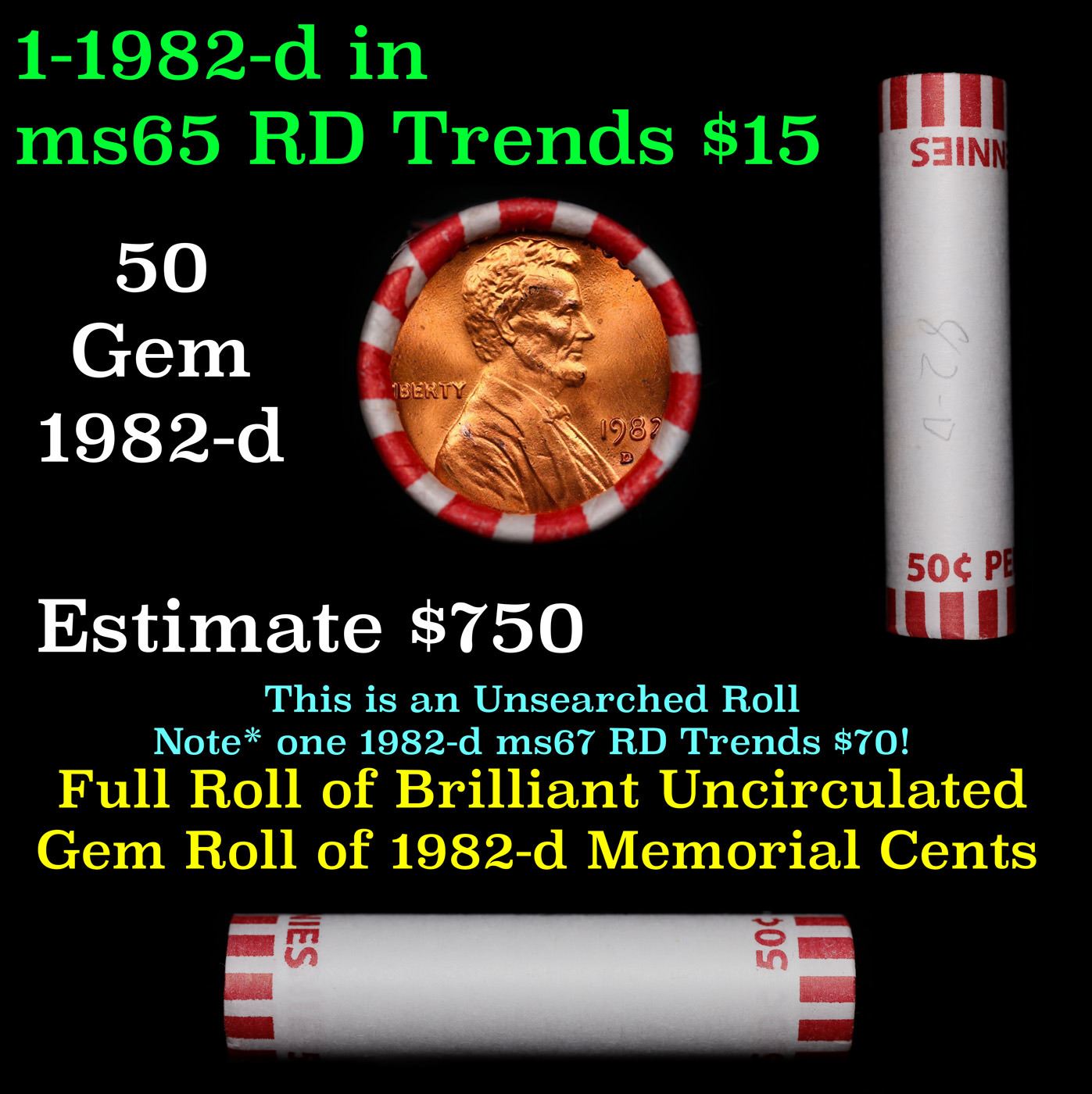 Shotgun Lincoln 1c roll, 1982-d 50 pcs Bank Wrapper.. A terrific Shotgun roll of Lincoln cents. Most if not all coin should be cherry red.
