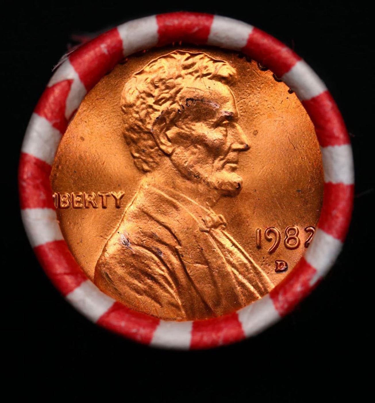 Shotgun Lincoln 1c roll, 1982-d 50 pcs Bank Wrapper.. A terrific Shotgun roll of Lincoln cents. Most if not all coin should be cherry red.