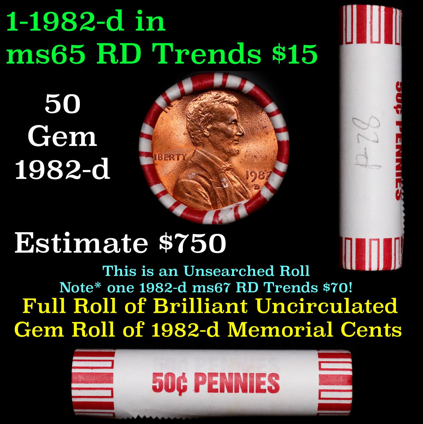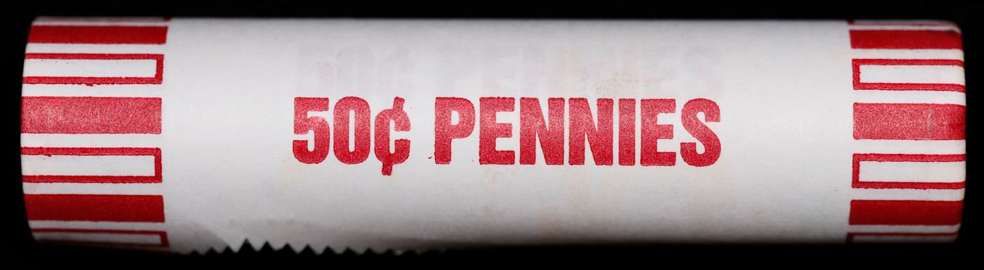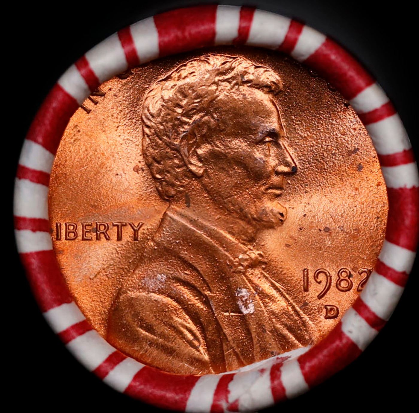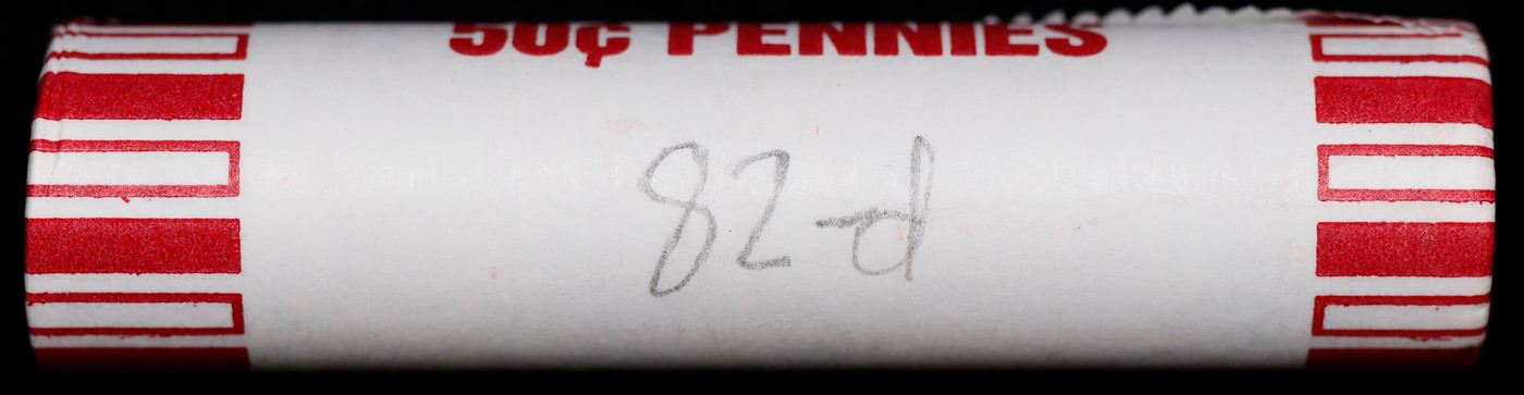 Shotgun Lincoln 1c roll, 1982-d 50 pcs Bank Wrapper.. A terrific Shotgun roll of Lincoln cents. Most if not all coin should be cherry red.