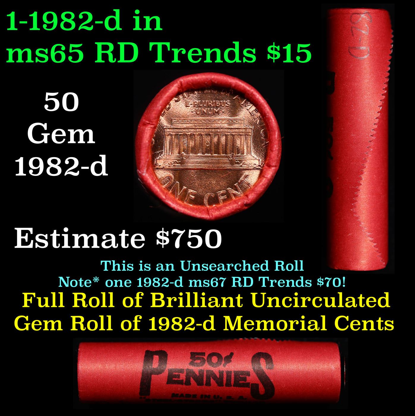 Shotgun Lincoln 1c roll, 1982-d 50 pcs Bank Wrapper.. A terrific Shotgun roll of Lincoln cents. Most if not all coin should be cherry red.