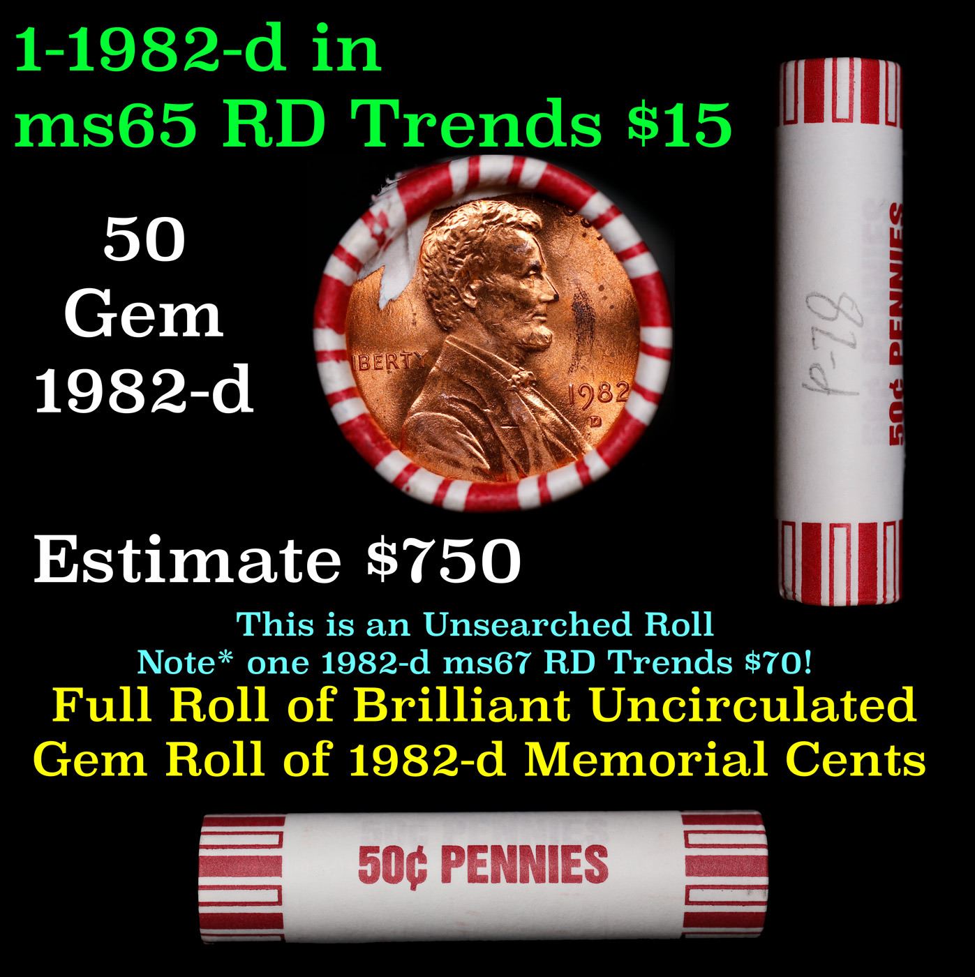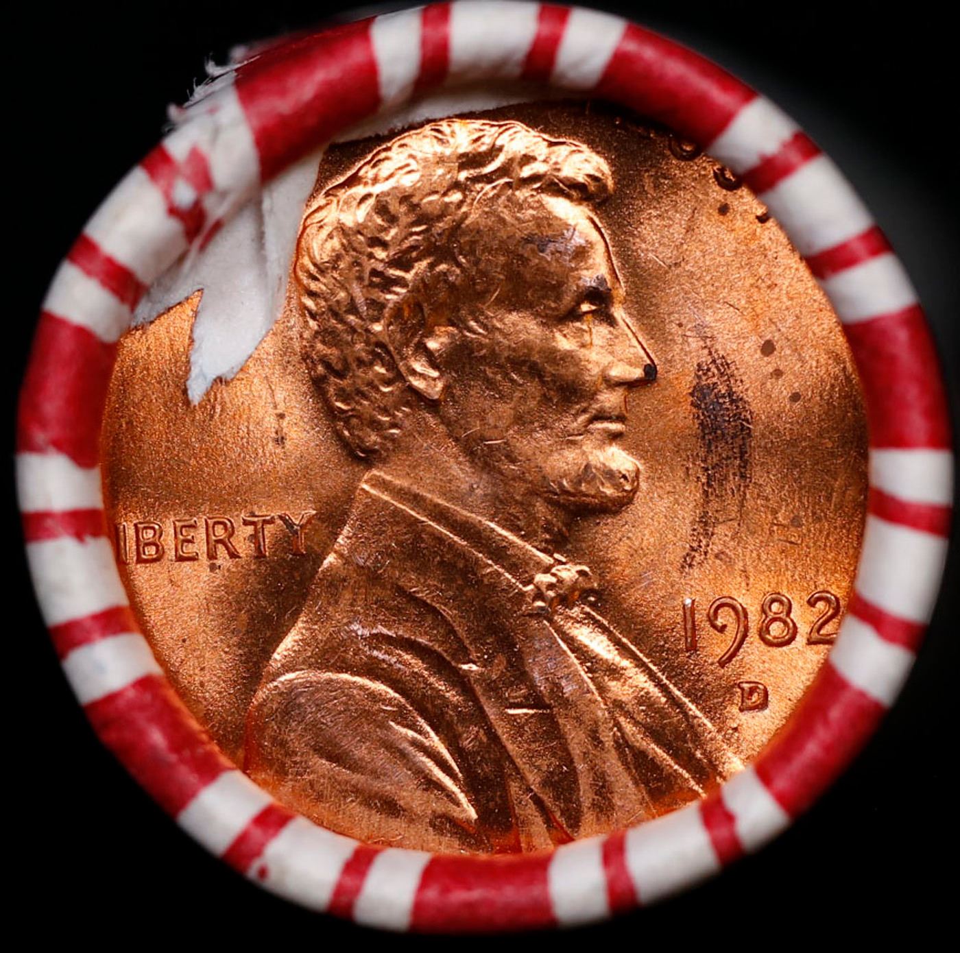 Shotgun Lincoln 1c roll, 1982-d 50 pcs Brandt 50c Wrapper.. A terrific Shotgun roll of Lincoln cents. Most if not all coin should be cherry red.