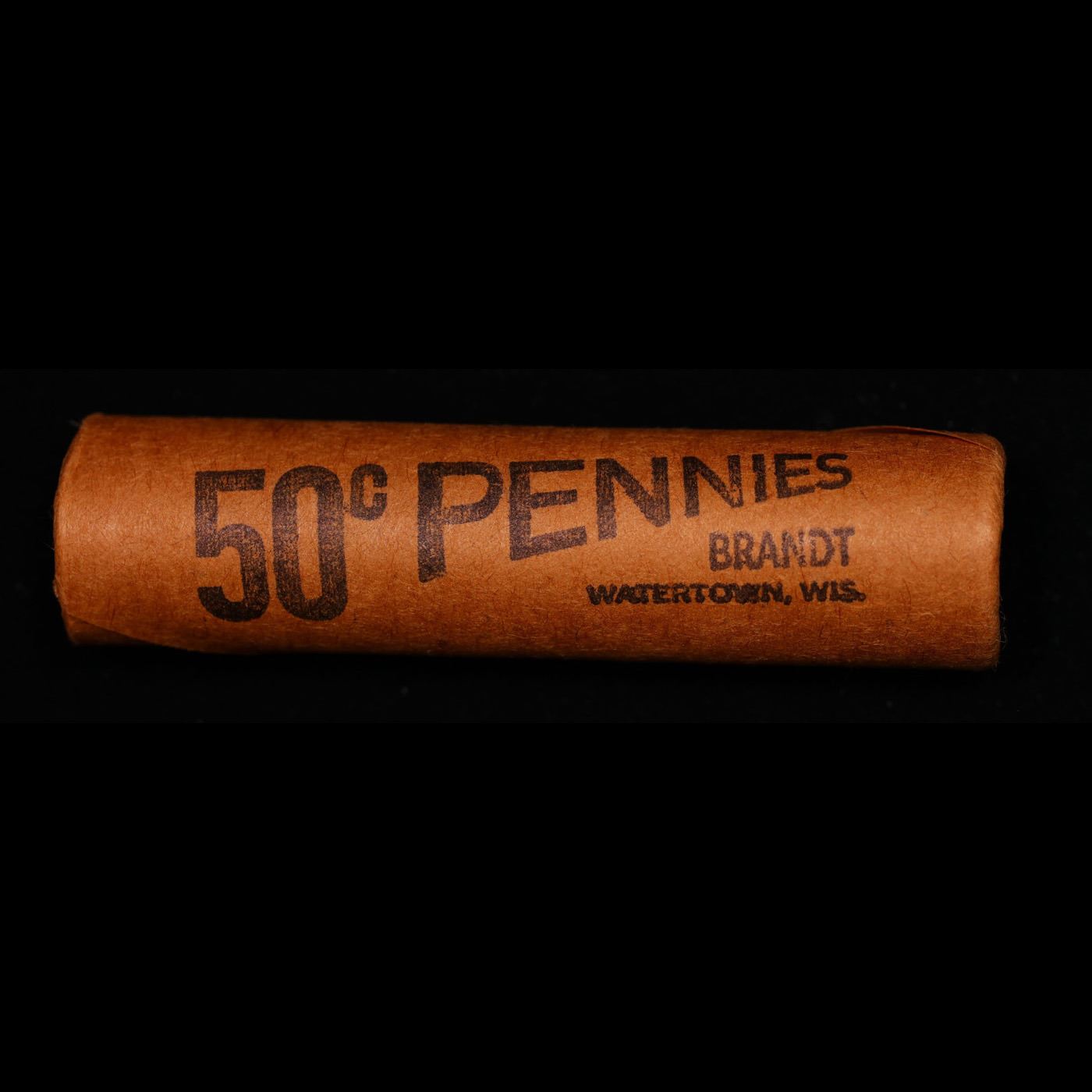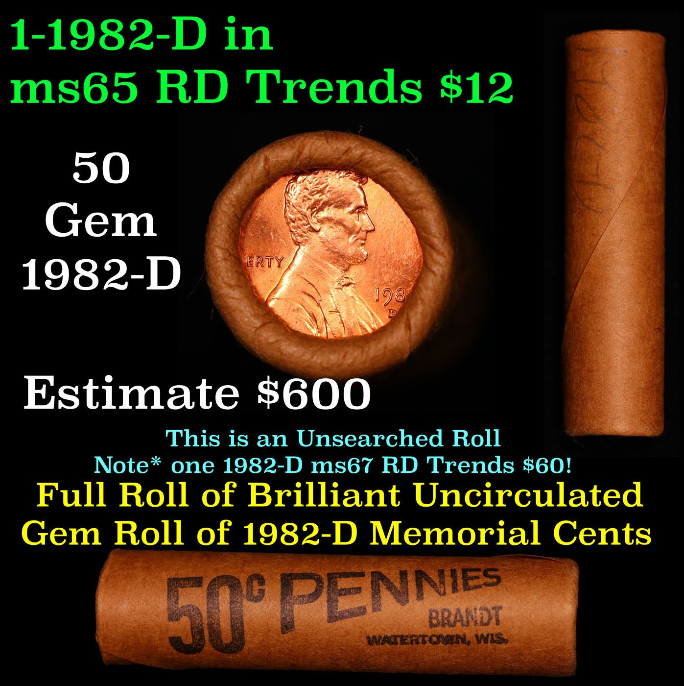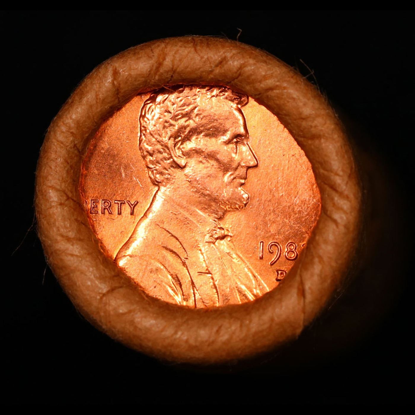 Shotgun Lincoln 1c roll, 1982-d 50 pcs Brandt Wrapper . A terrific Shotgun roll of Lincoln cents. All coins cherry red. Trends ms65 rd $12