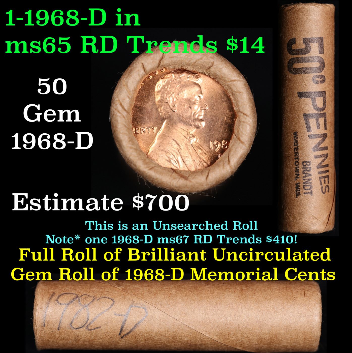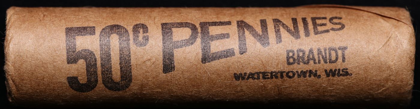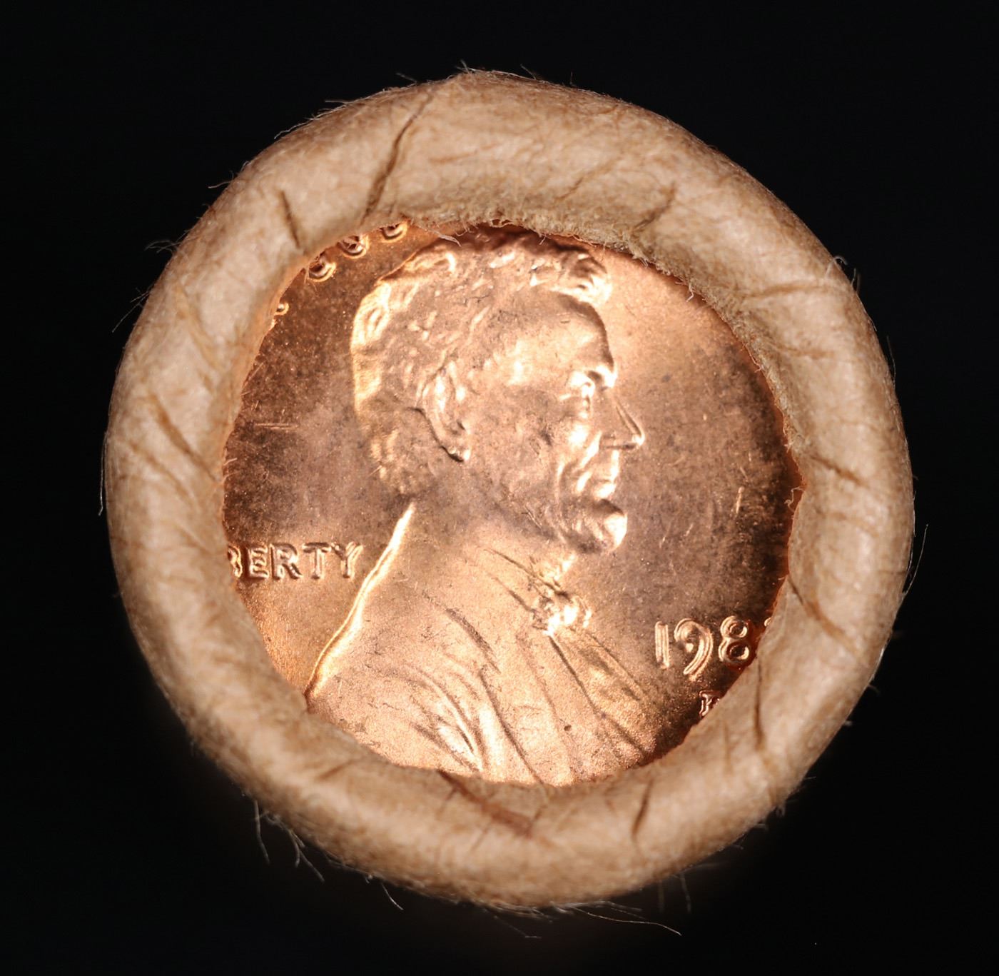 Shotgun Lincoln 1c roll, 1982-d 50 pcs Brandt Wrapper . A terrific Shotgun roll of Lincoln cents. All coins cherry red. Trends ms65 rd $12