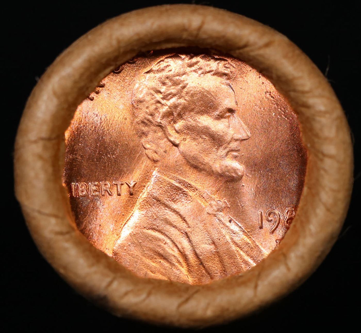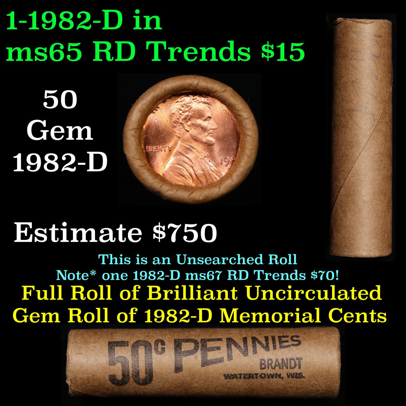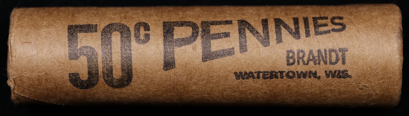 Shotgun Lincoln 1c roll, 1982-d 50 pcs Brandt Wrapper . A terrific Shotgun roll of Lincoln cents. All coins cherry red. Trends ms65 rd $12