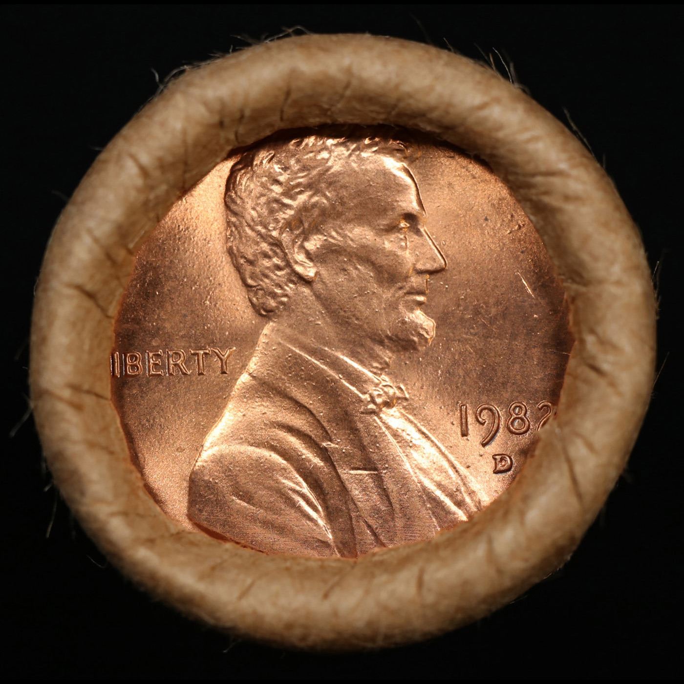 Shotgun Lincoln 1c roll, 1982-d 50 pcs Brandt Wrapper.. A terrific Shotgun roll of Lincoln cents. Most if not all coin should be cherry red. Trends ms65 rd $12