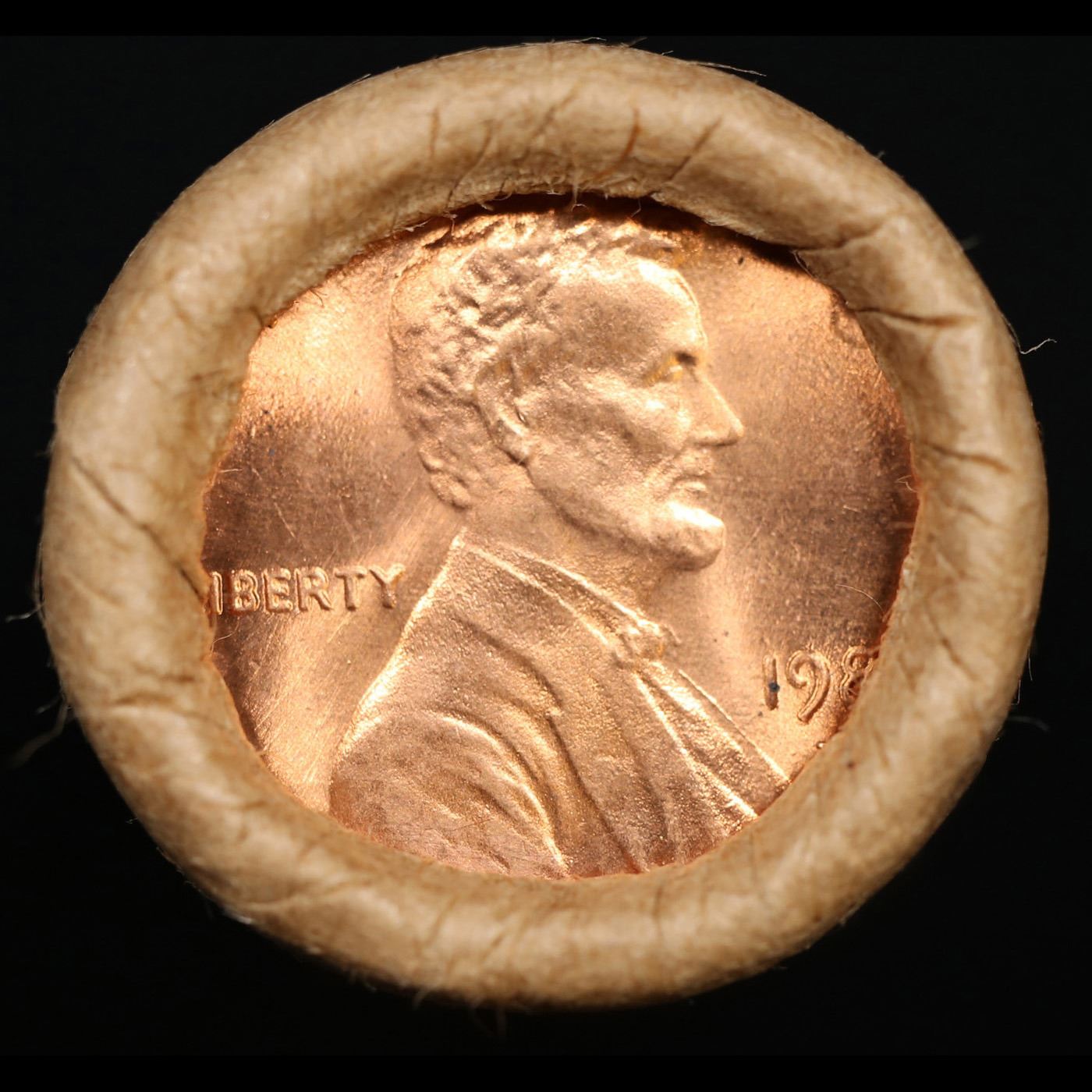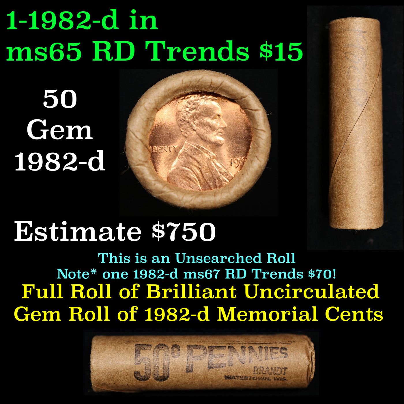 Shotgun Lincoln 1c roll, 1982-d 50 pcs Brandt Wrapper.. A terrific Shotgun roll of Lincoln cents. Most if not all coin should be cherry red. Trends ms65 rd $12