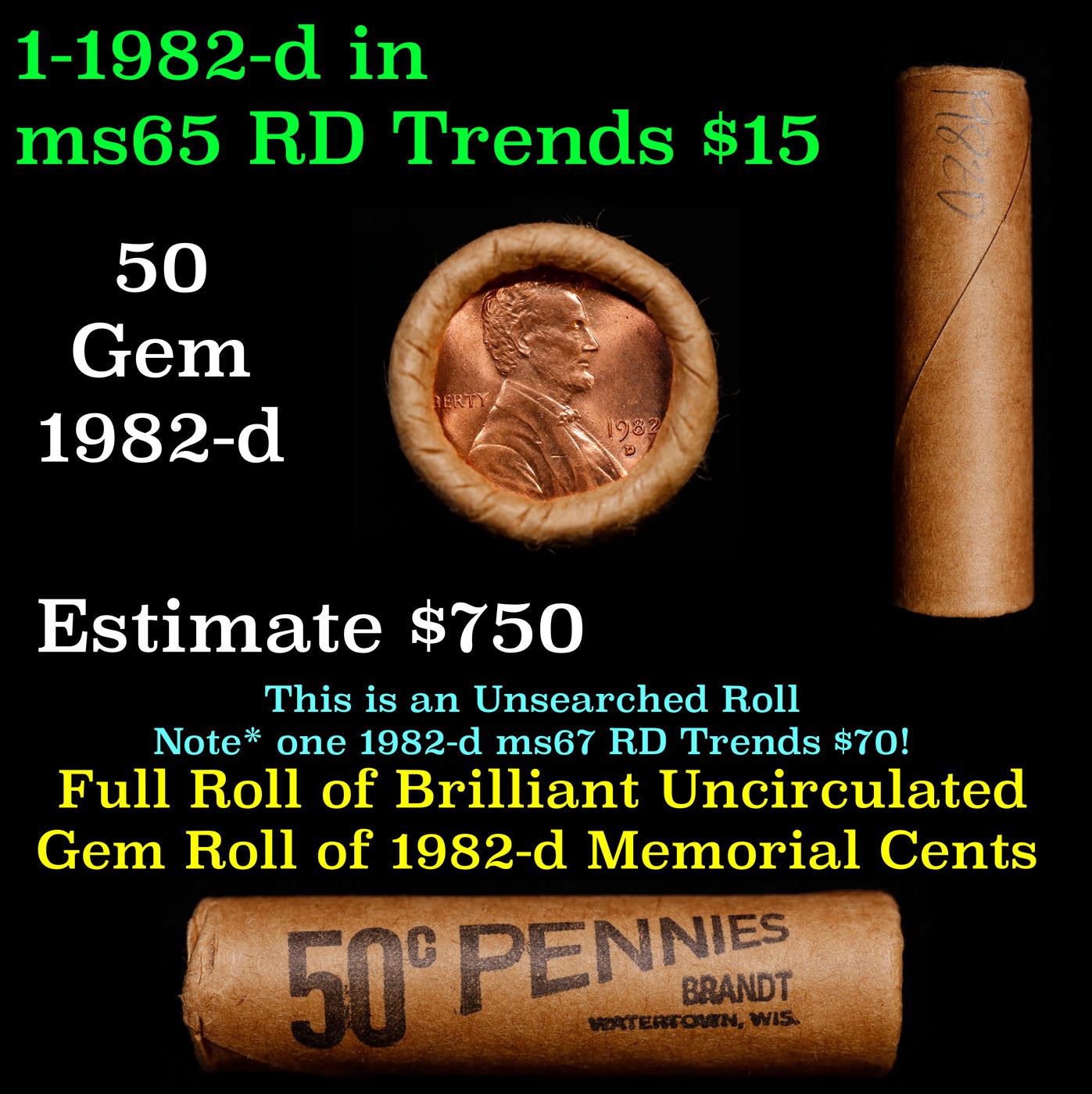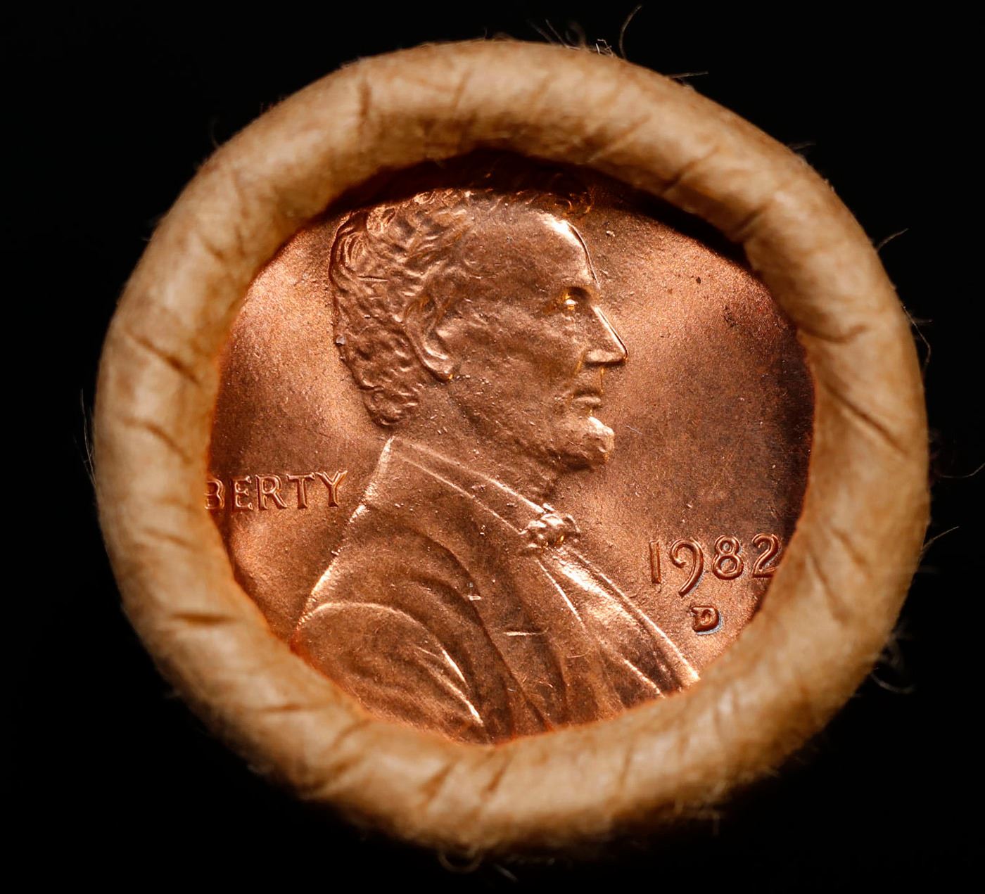 Shotgun Lincoln 1c roll, 1982-d 50 pcs Brandt Wrapper.. A terrific Shotgun roll of Lincoln cents. Most if not all coin should be cherry red.