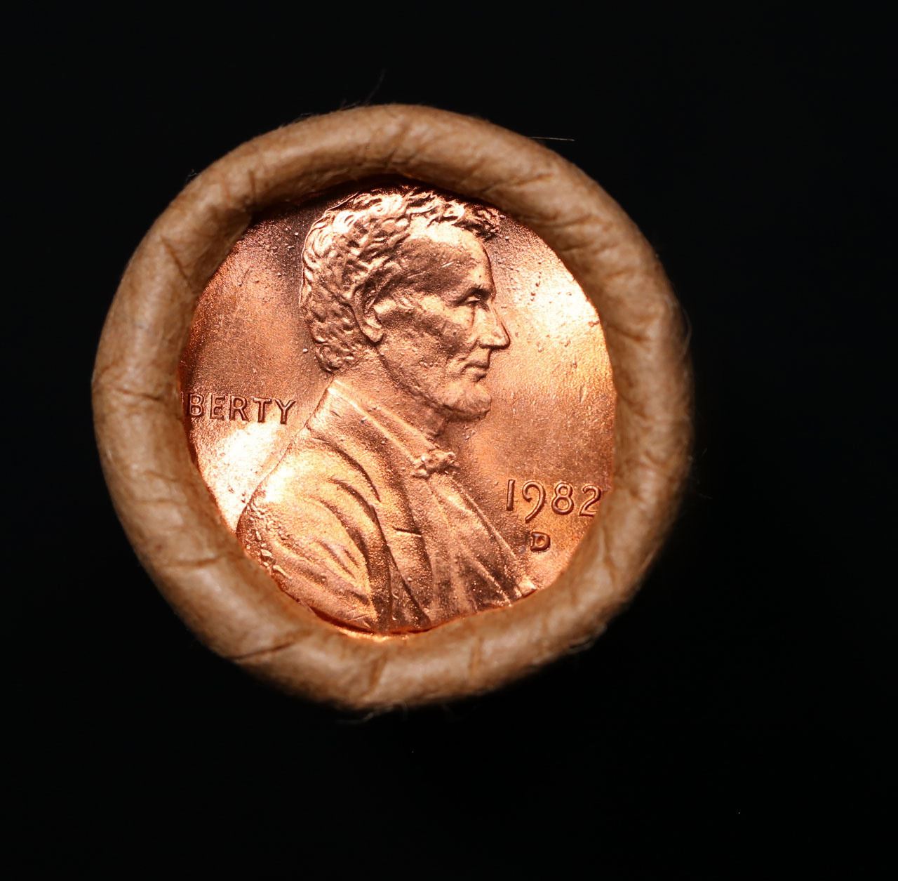 Shotgun Lincoln 1c roll, 1982-d 50 pcs Brandt Wrapper.. A terrific Shotgun roll of Lincoln cents. Most if not all coin should be cherry red.