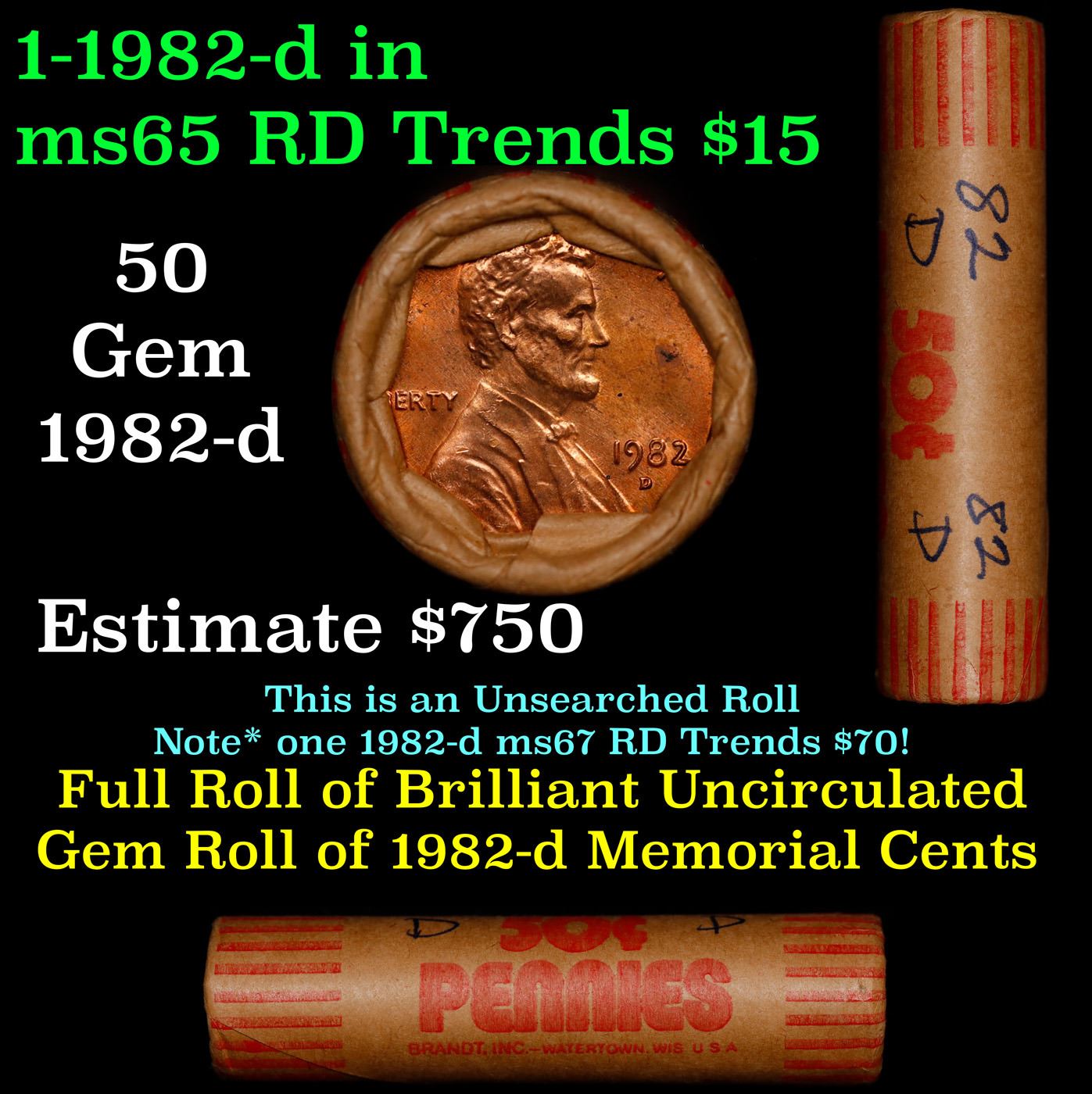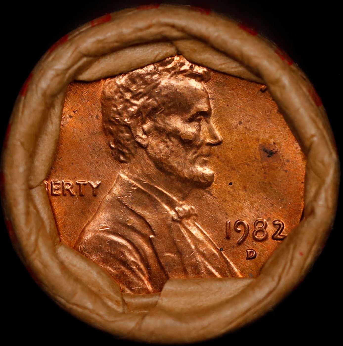 Shotgun Lincoln 1c roll, 1982-d 50 pcs Brandt Wrapper.. A terrific Shotgun roll of Lincoln cents. Most if not all coin should be cherry red.