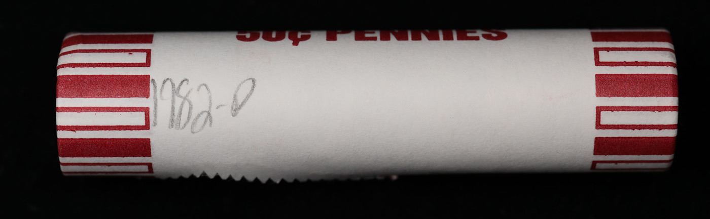 Shotgun Lincoln 1c roll, 1982-d 50 pcs Steel-Strong Wrapper.. A terrific Shotgun roll of Lincoln cents. Most if not all coin should be cherry red.
