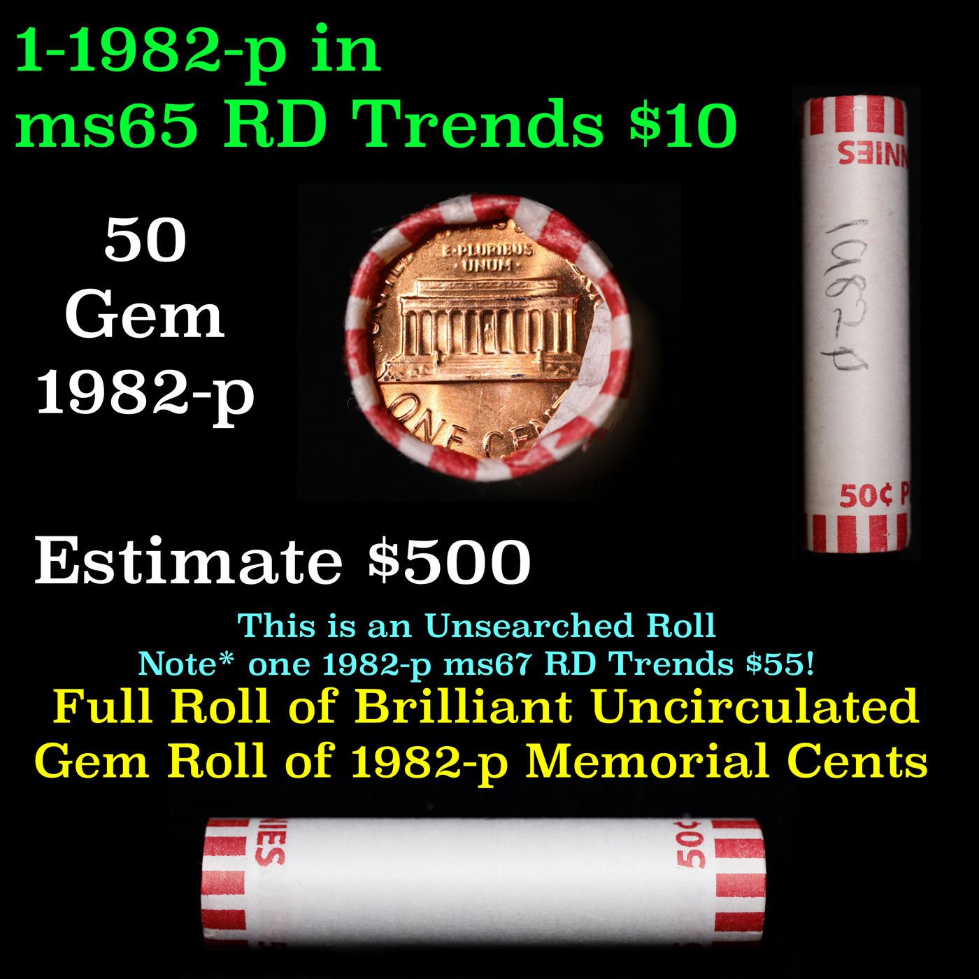 Shotgun Lincoln 1c roll, 1982-p 50 pcs Bank Wrapper.. A terrific Shotgun roll of Lincoln cents. Most if not all coin should be cherry red.