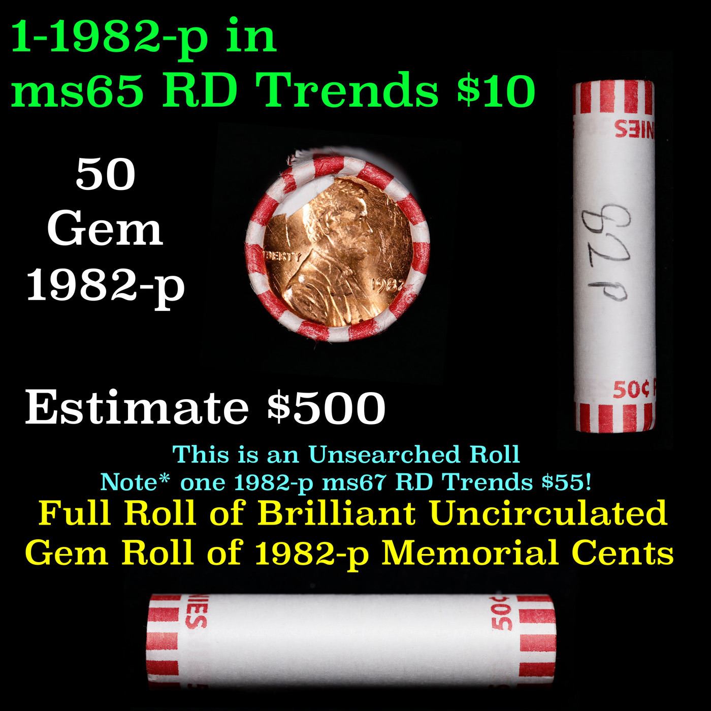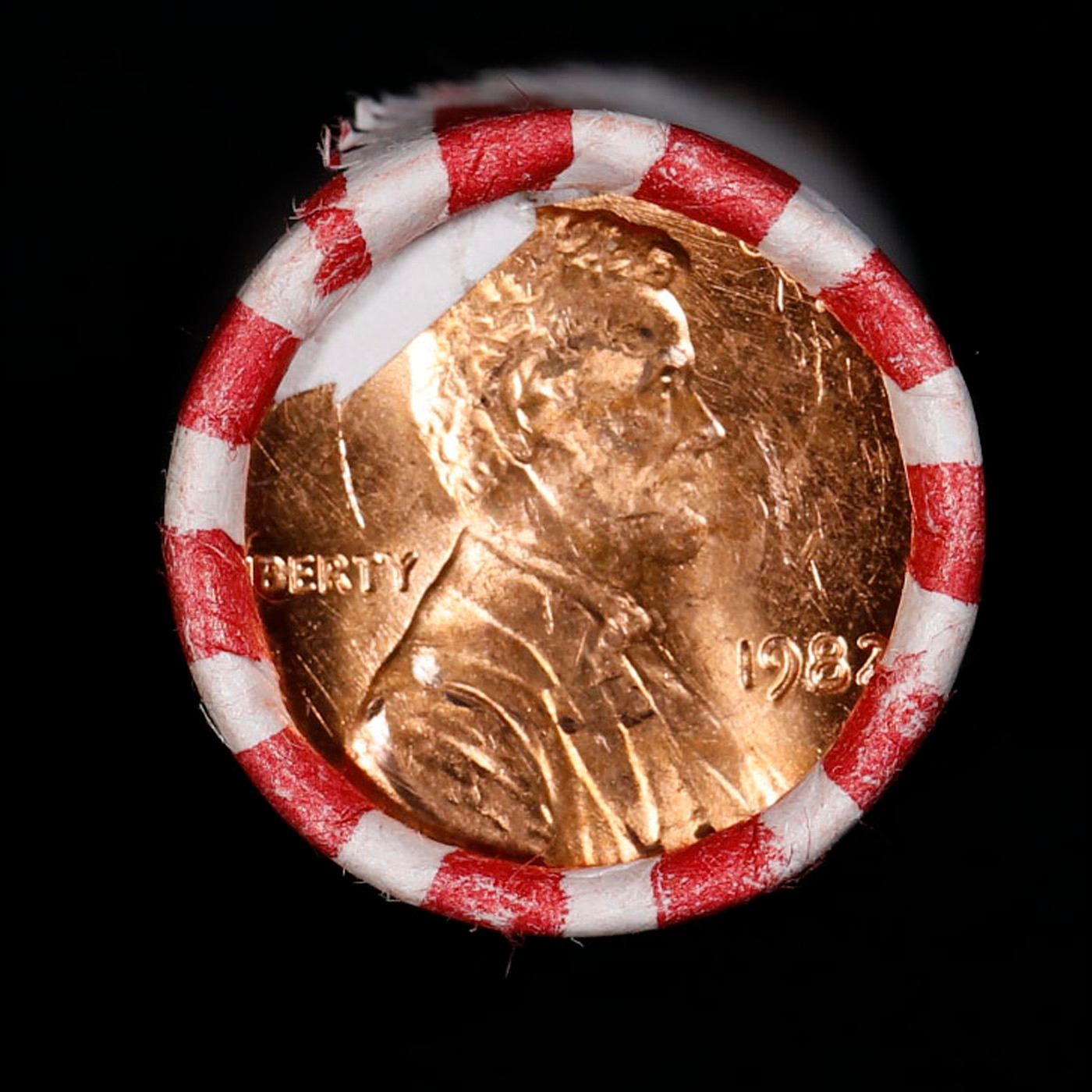 Shotgun Lincoln 1c roll, 1982-p 50 pcs Bank Wrapper.. A terrific Shotgun roll of Lincoln cents. Most if not all coin should be cherry red.