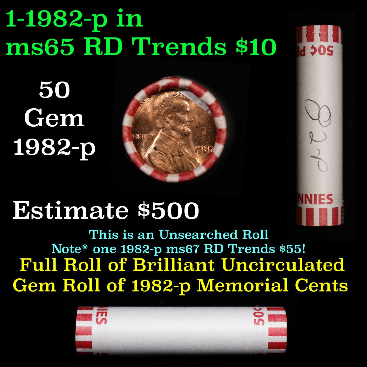 Shotgun Lincoln 1c roll, 1982-p 50 pcs Bank Wrapper.. A terrific Shotgun roll of Lincoln cents. Most if not all coin should be cherry red.