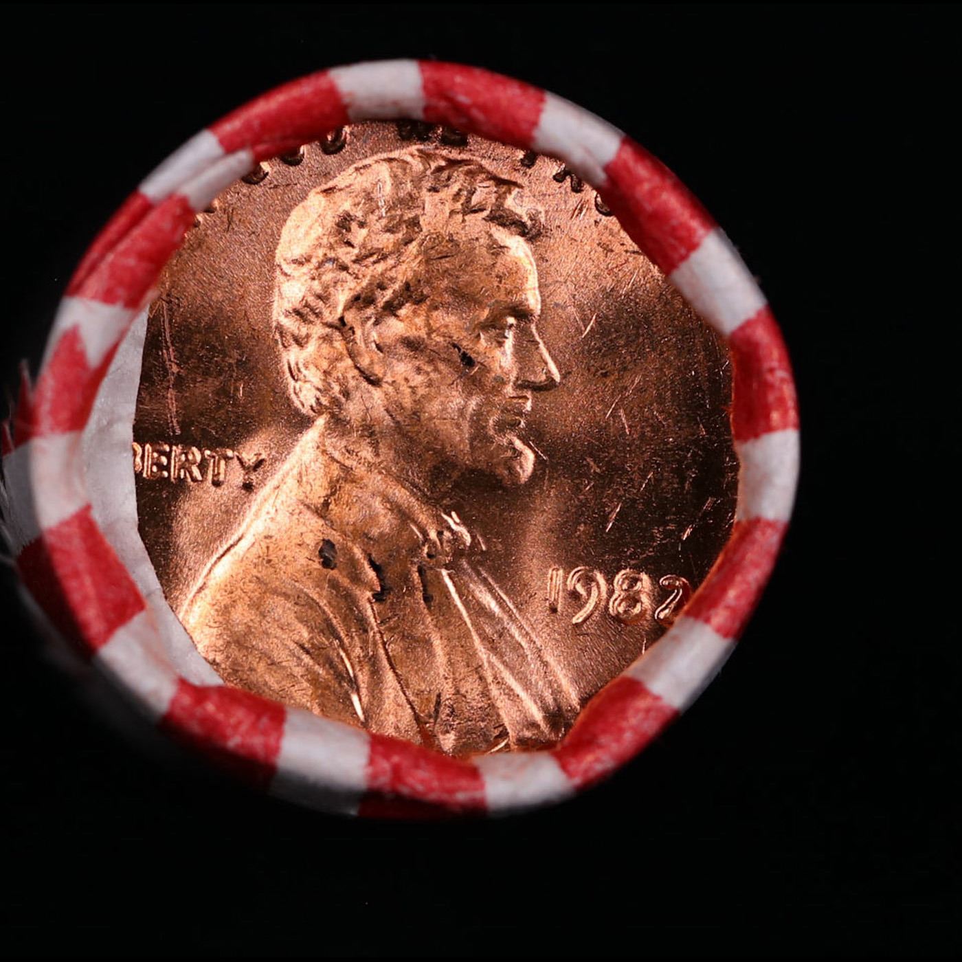 Shotgun Lincoln 1c roll, 1982-p 50 pcs Bank Wrapper.. A terrific Shotgun roll of Lincoln cents. Most if not all coin should be cherry red.