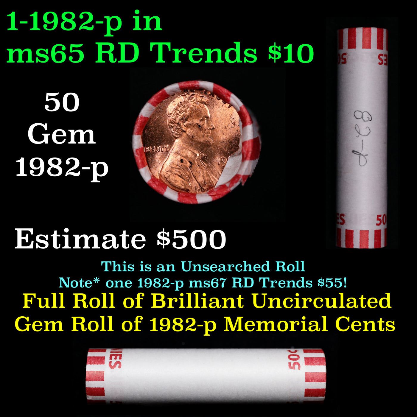 Shotgun Lincoln 1c roll, 1982-p 50 pcs Bank Wrapper.. A terrific Shotgun roll of Lincoln cents. Most if not all coin should be cherry red.