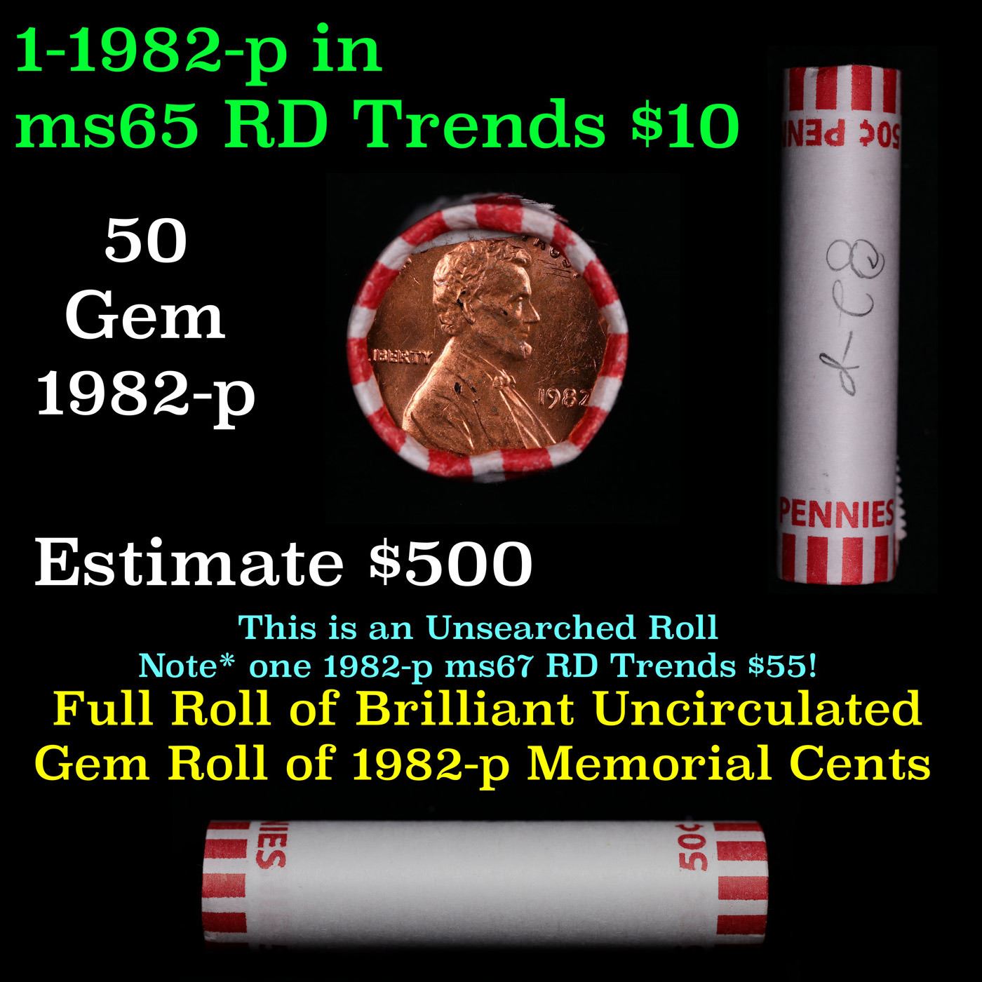 Shotgun Lincoln 1c roll, 1982-p 50 pcs Bank Wrapper.. A terrific Shotgun roll of Lincoln cents. Most if not all coin should be cherry red.