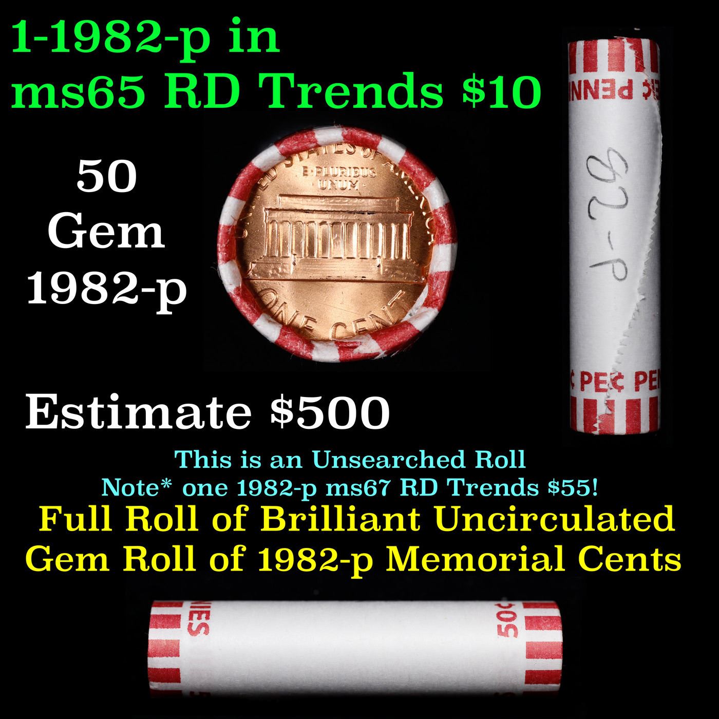 Shotgun Lincoln 1c roll, 1982-p 50 pcs Bank Wrapper.. A terrific Shotgun roll of Lincoln cents. Most if not all coin should be cherry red.