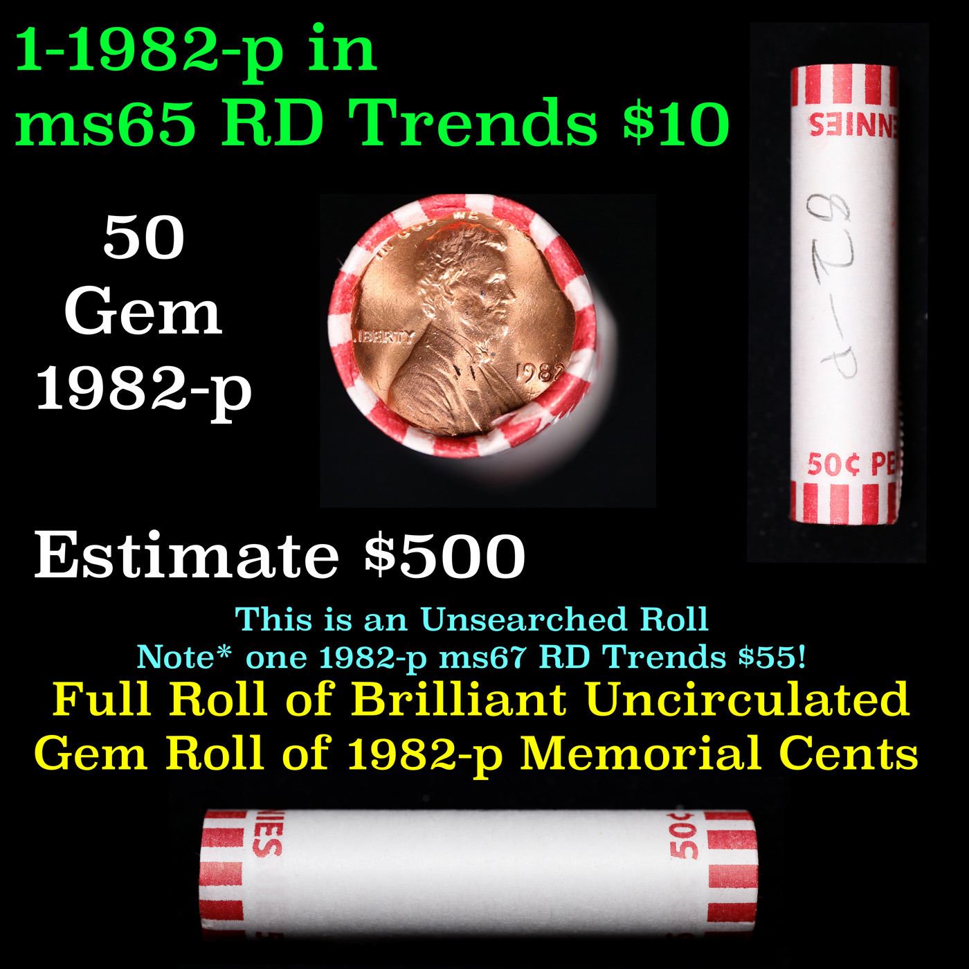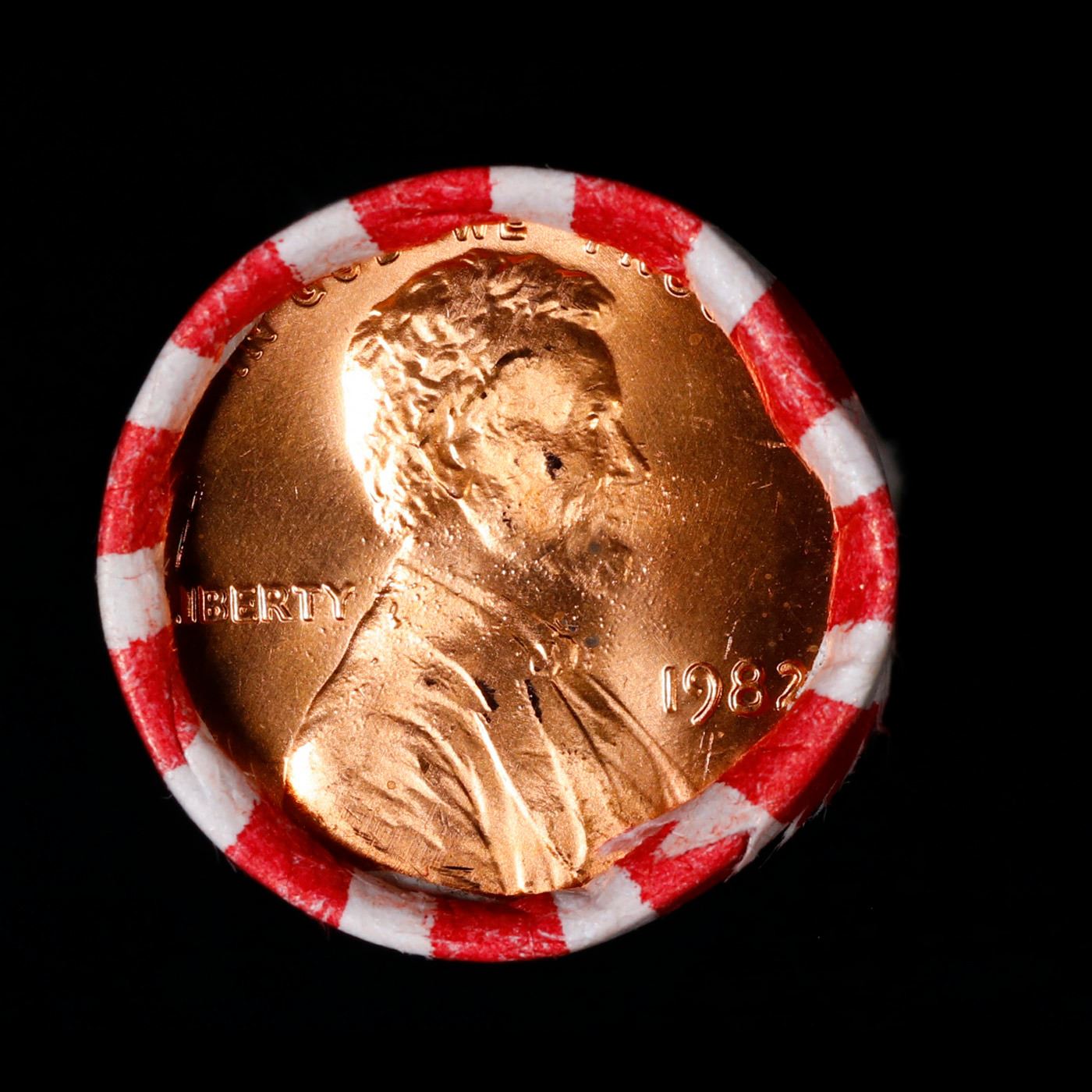 Shotgun Lincoln 1c roll, 1982-p 50 pcs Bank Wrapper.. A terrific Shotgun roll of Lincoln cents. Most if not all coin should be cherry red.